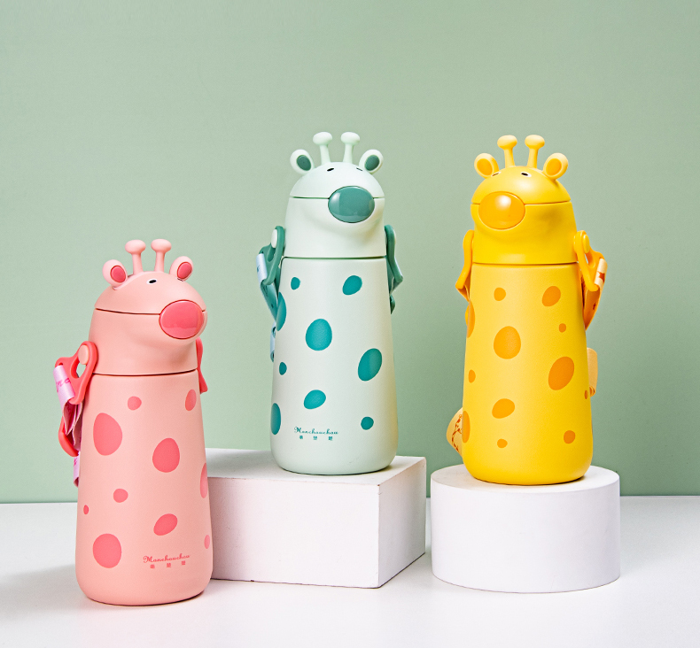 500ML萌熊实色吸管彩色卡通保温杯304不锈钢可爱水杯