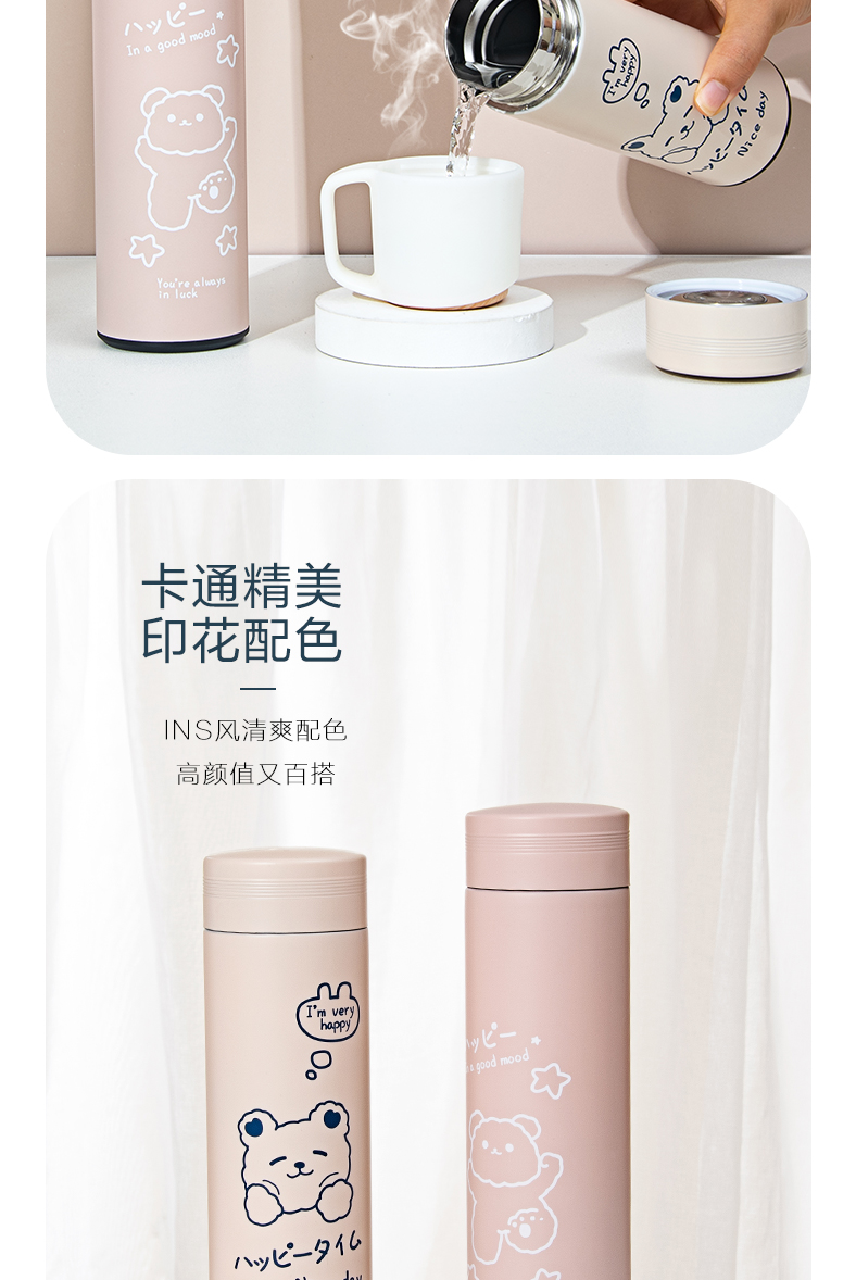 420ML时尚简约吨吨保温杯304不锈钢迷你便携吸管杯