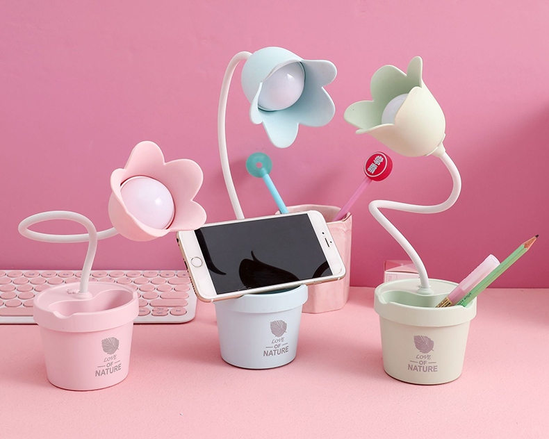 花朵笔筒台灯学生宿舍护眼学习两用创意个性