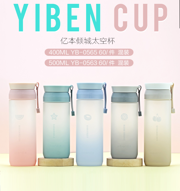 500ML亿本悦色太空杯创意手提绳便携带塑料杯