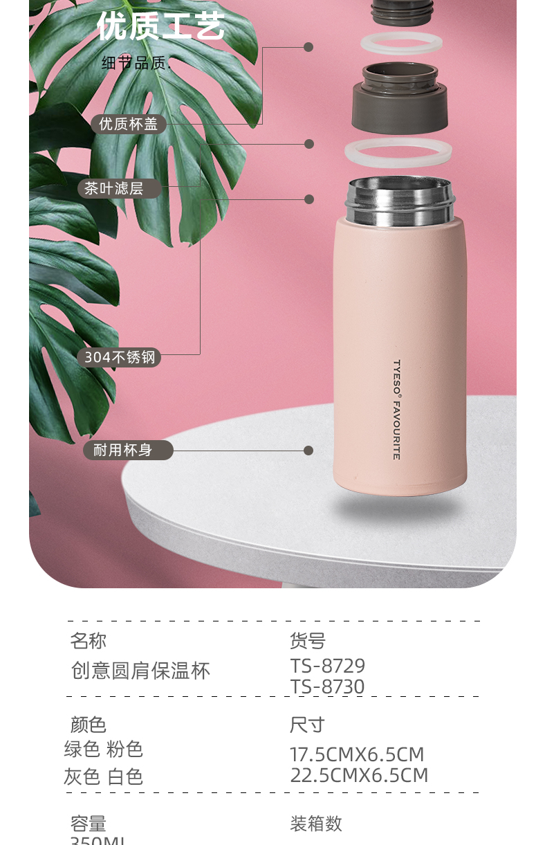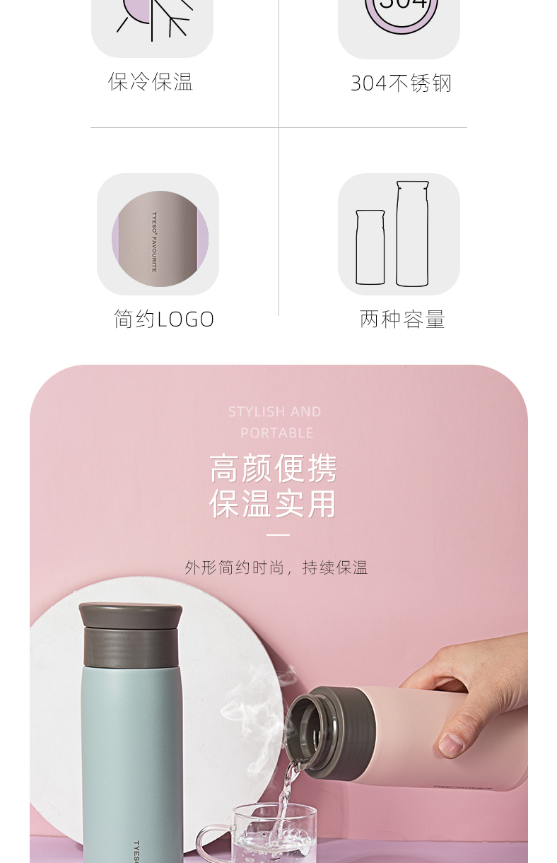 360ML手提毛毛虫保温杯304不锈钢男女士商务直身杯