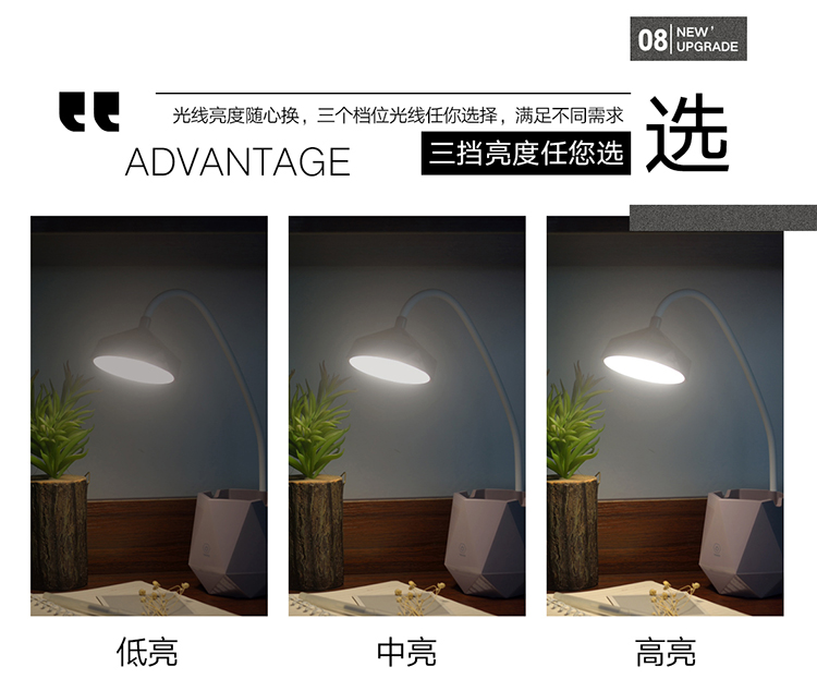 1007创意夹子触摸感应台灯三档调光LED护眼灯