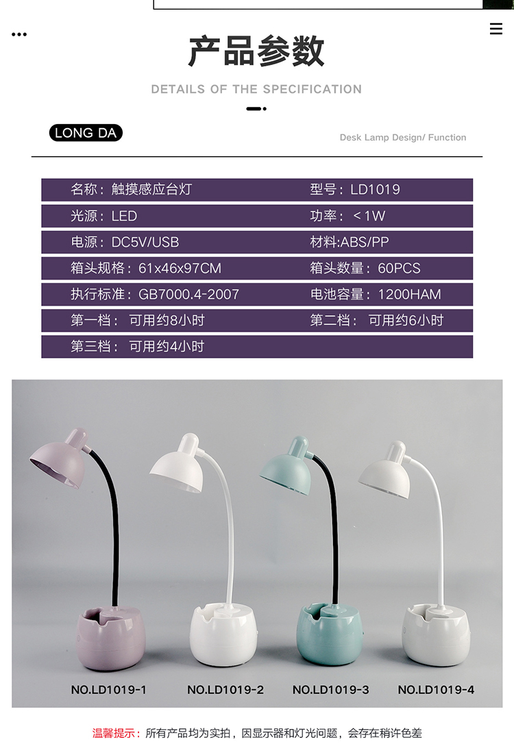 1017触摸感应台灯创意手机支架收纳盒三档调节读书灯