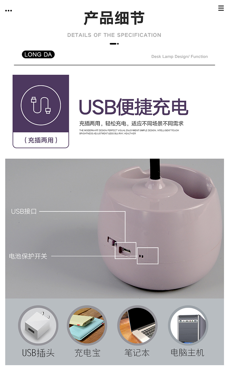 1003触摸感应台灯夹子护眼LED阅读灯USB充电小夜灯
