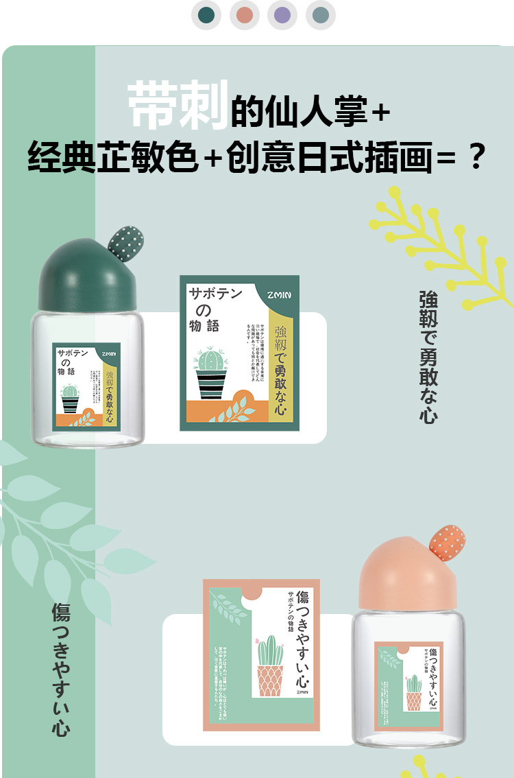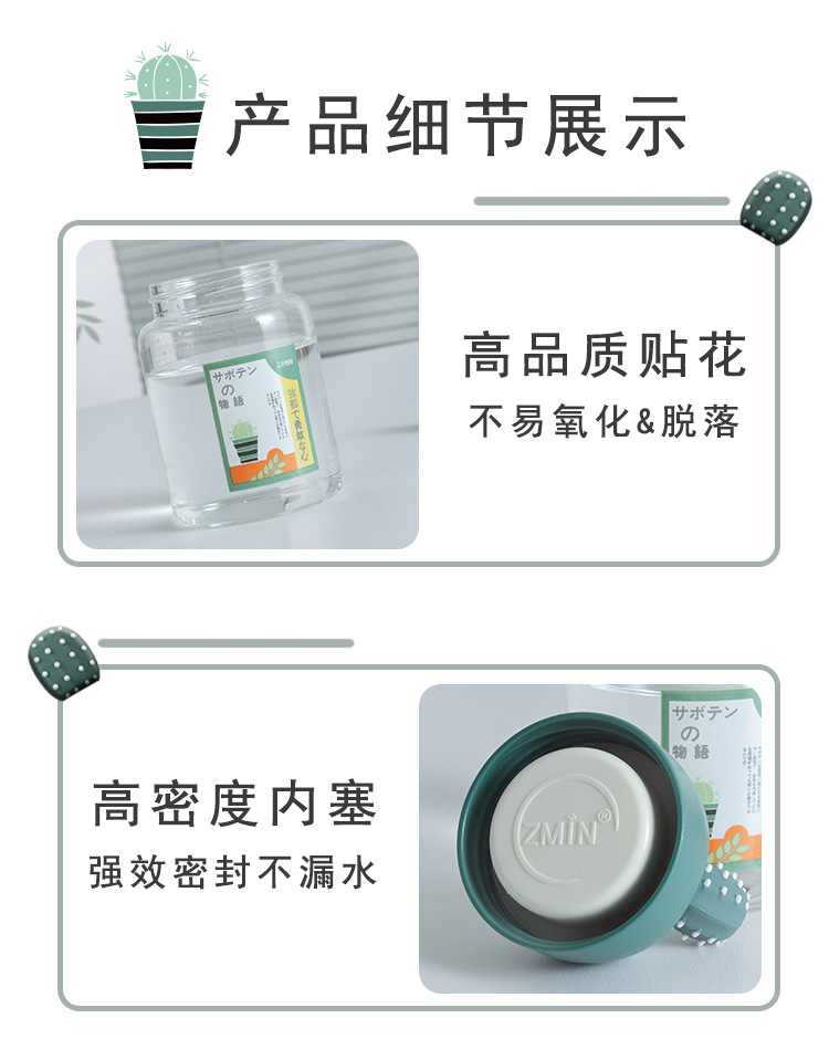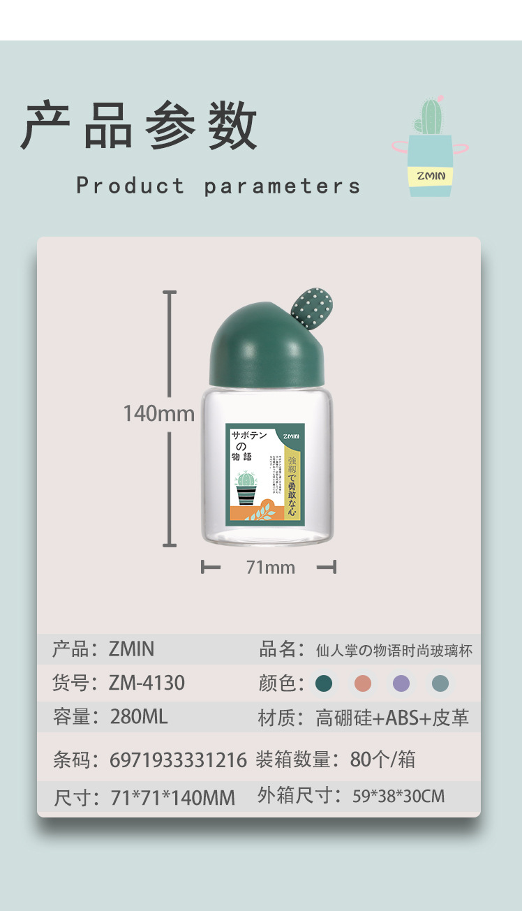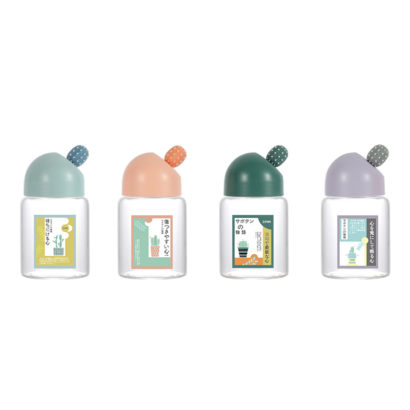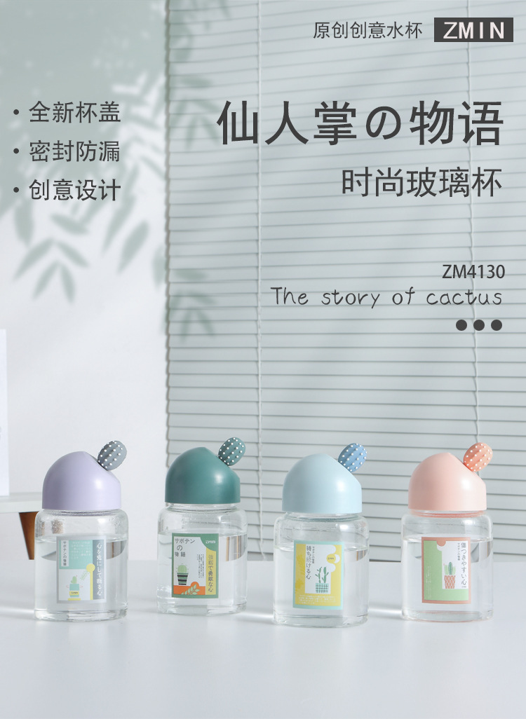 创意小清新水杯时尚办公室耐高温卡通高硼硅玻璃杯户外便携礼品杯
