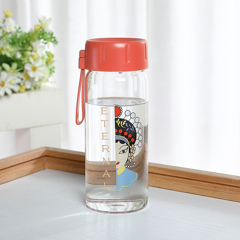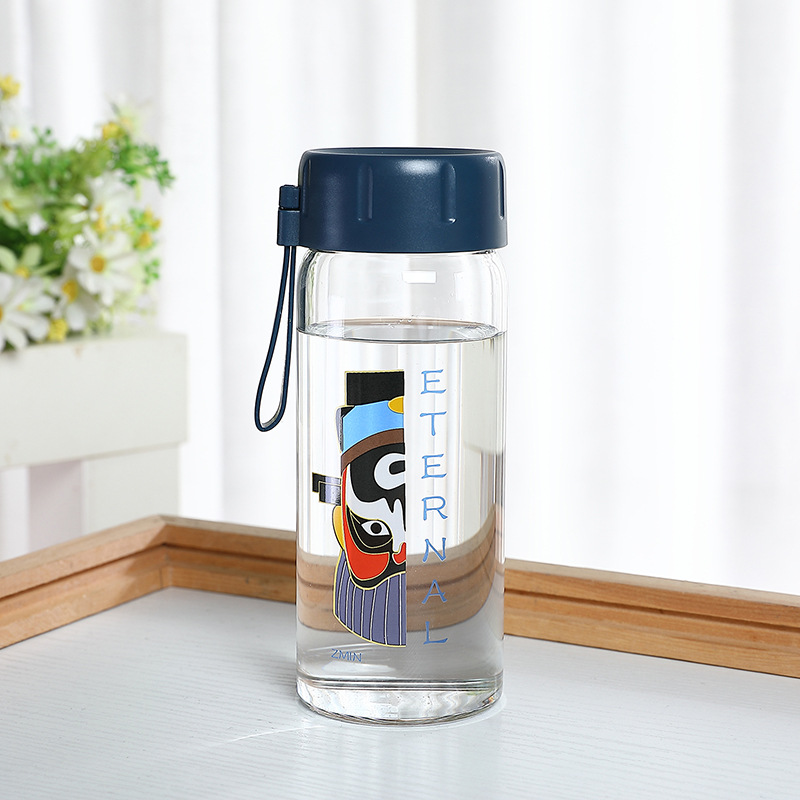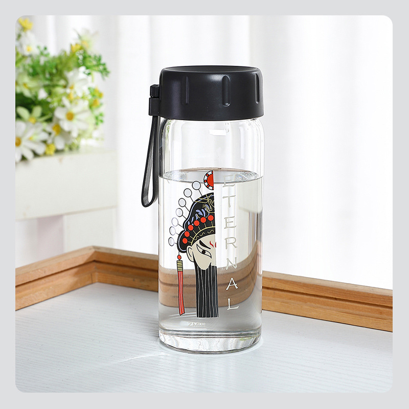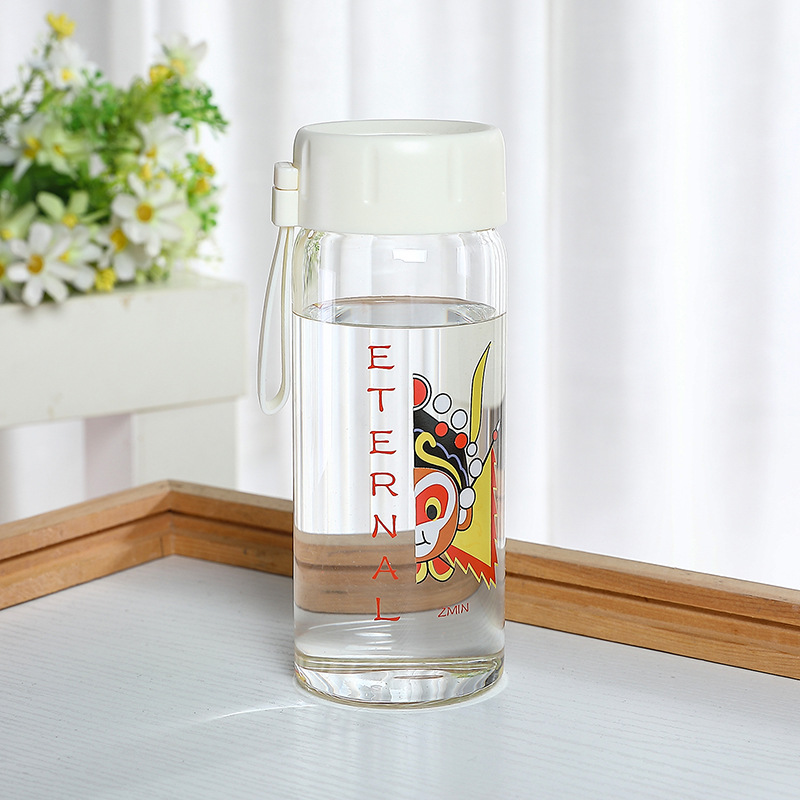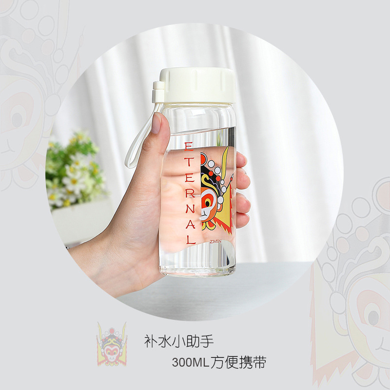 500ml西恩玻璃杯学生情侣小清新可爱便携提手水杯