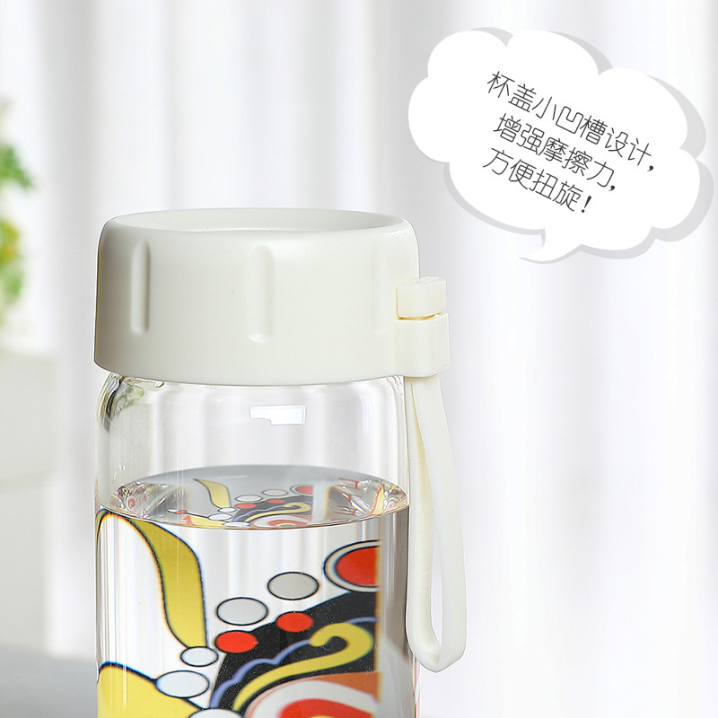 350ML简悦奇趣卡通玻璃杯带茶隔男女士办公水杯子