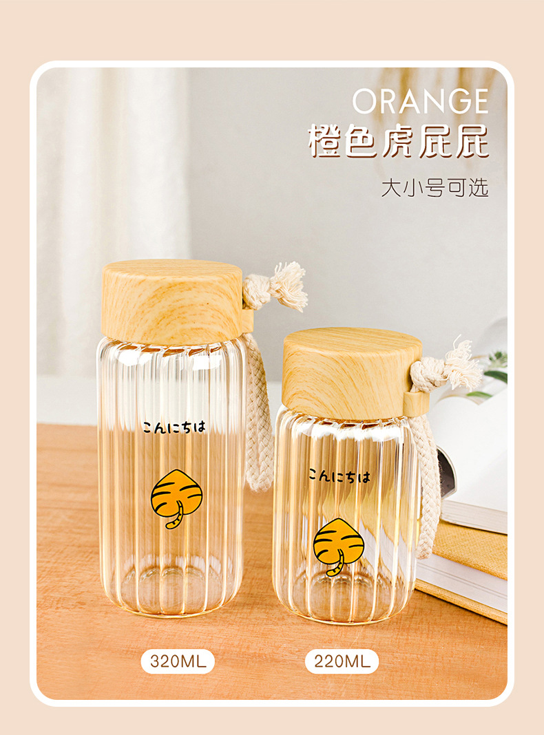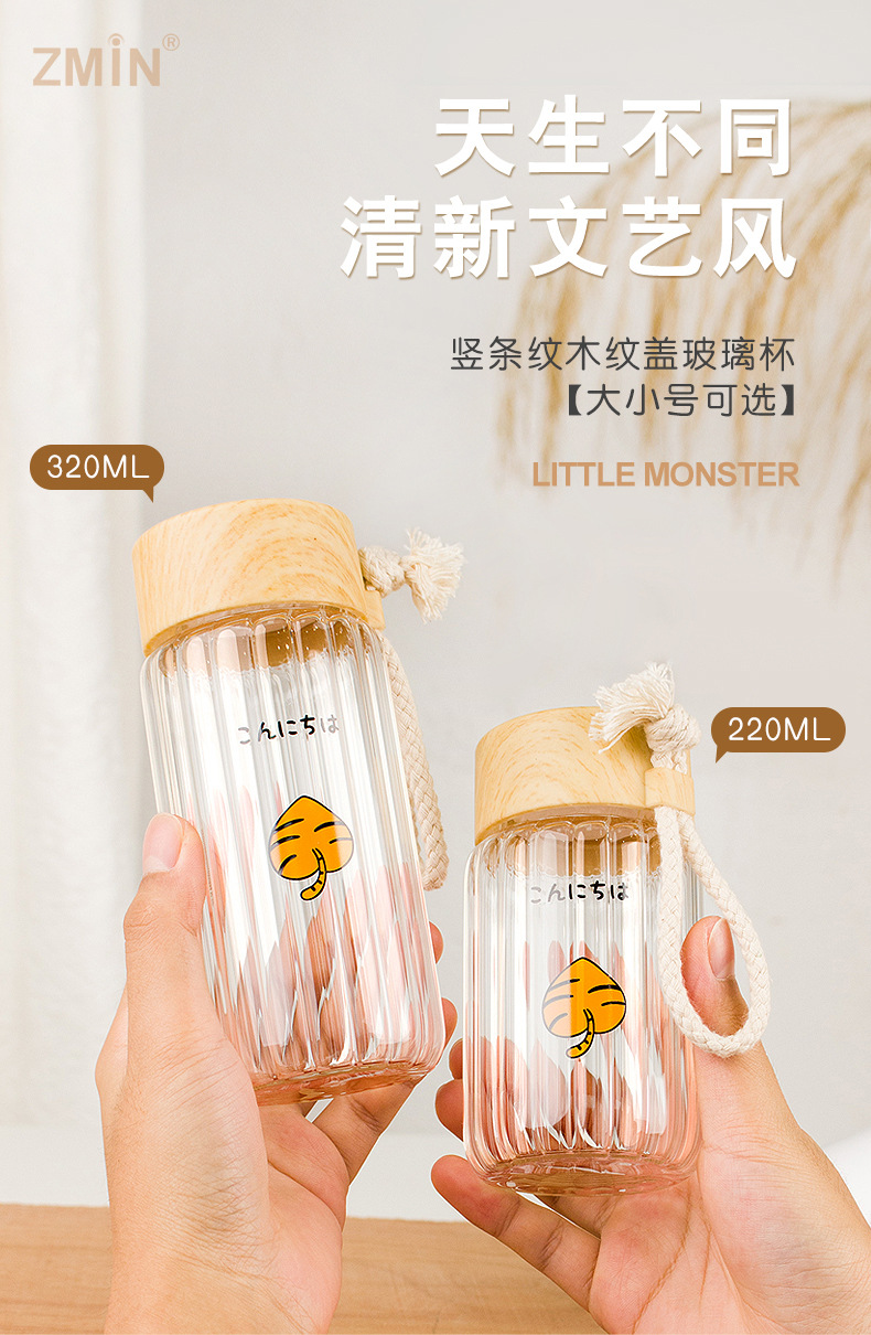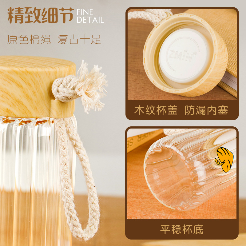 时尚创意木纹盖高硼硅玻璃杯简约男女办公室水杯户外礼品杯可批发