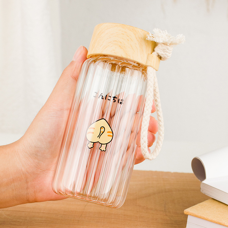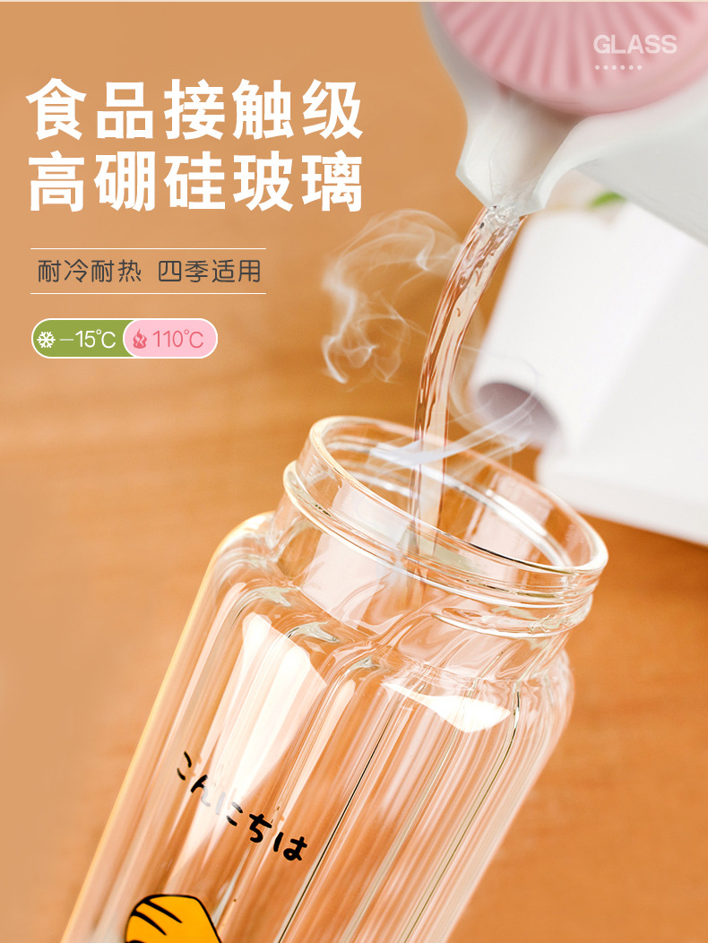创意小清新水杯时尚办公室耐高温卡通高硼硅玻璃杯户外便携礼品杯