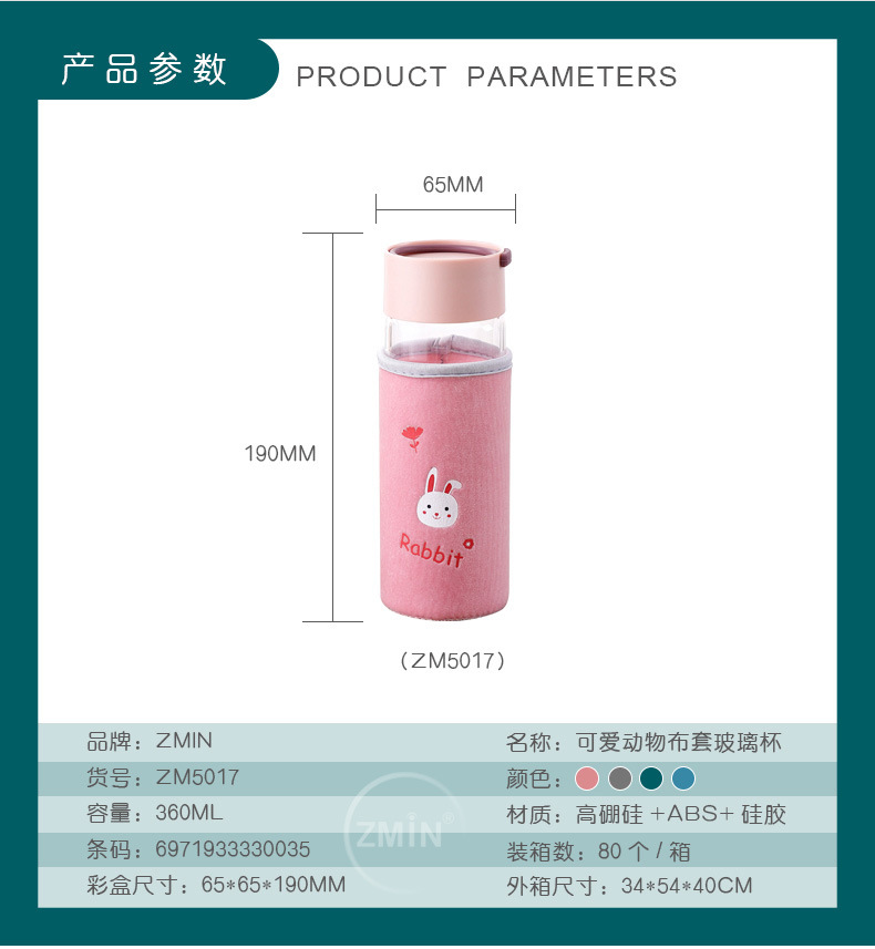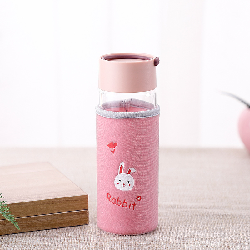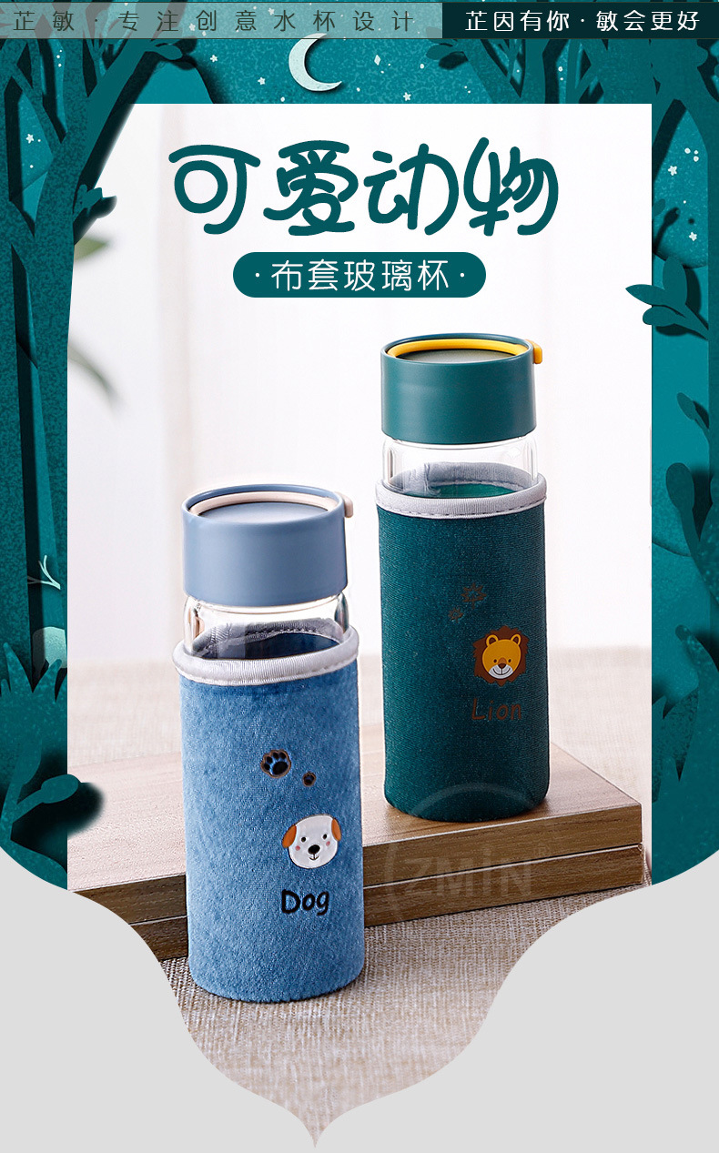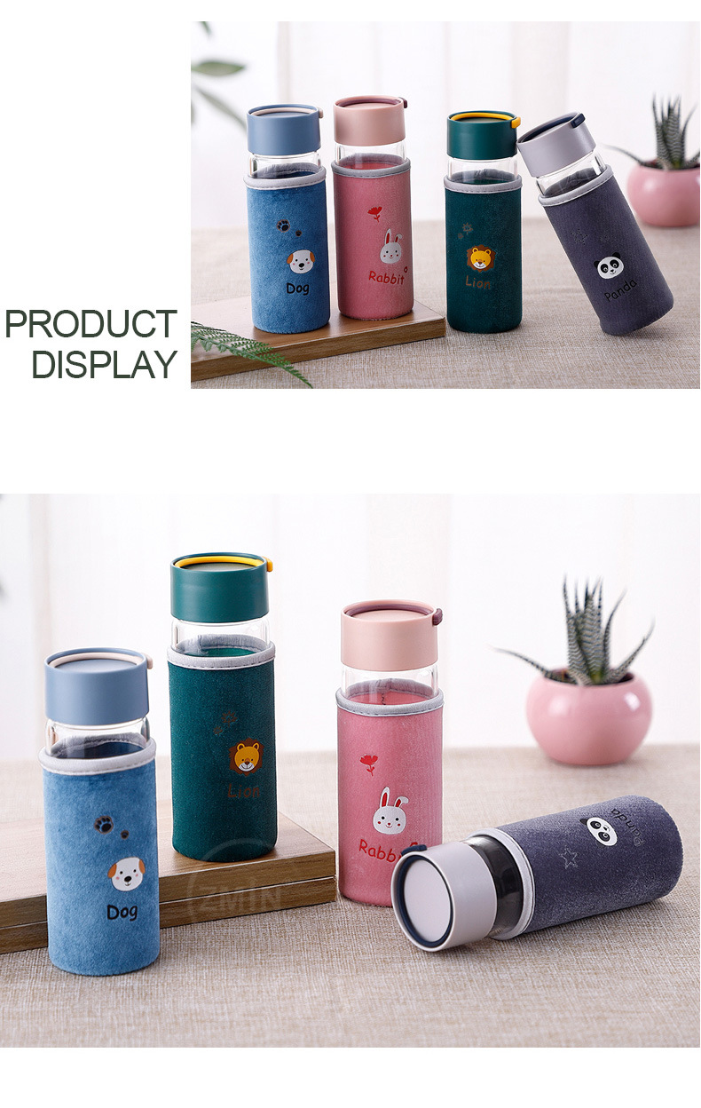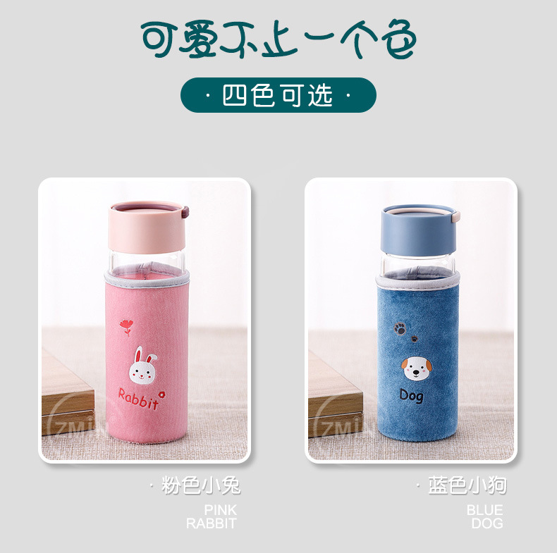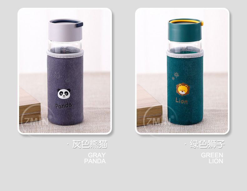 280ML卡通欧彩动物双层玻璃杯学生隔热防烫喝水杯子