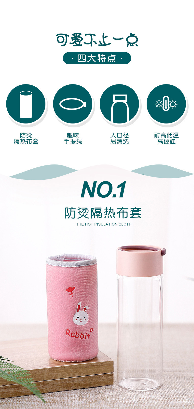 硅胶隔热防烫透明高硼硅水杯车载随手泡茶杯时尚男女学生杯子印字