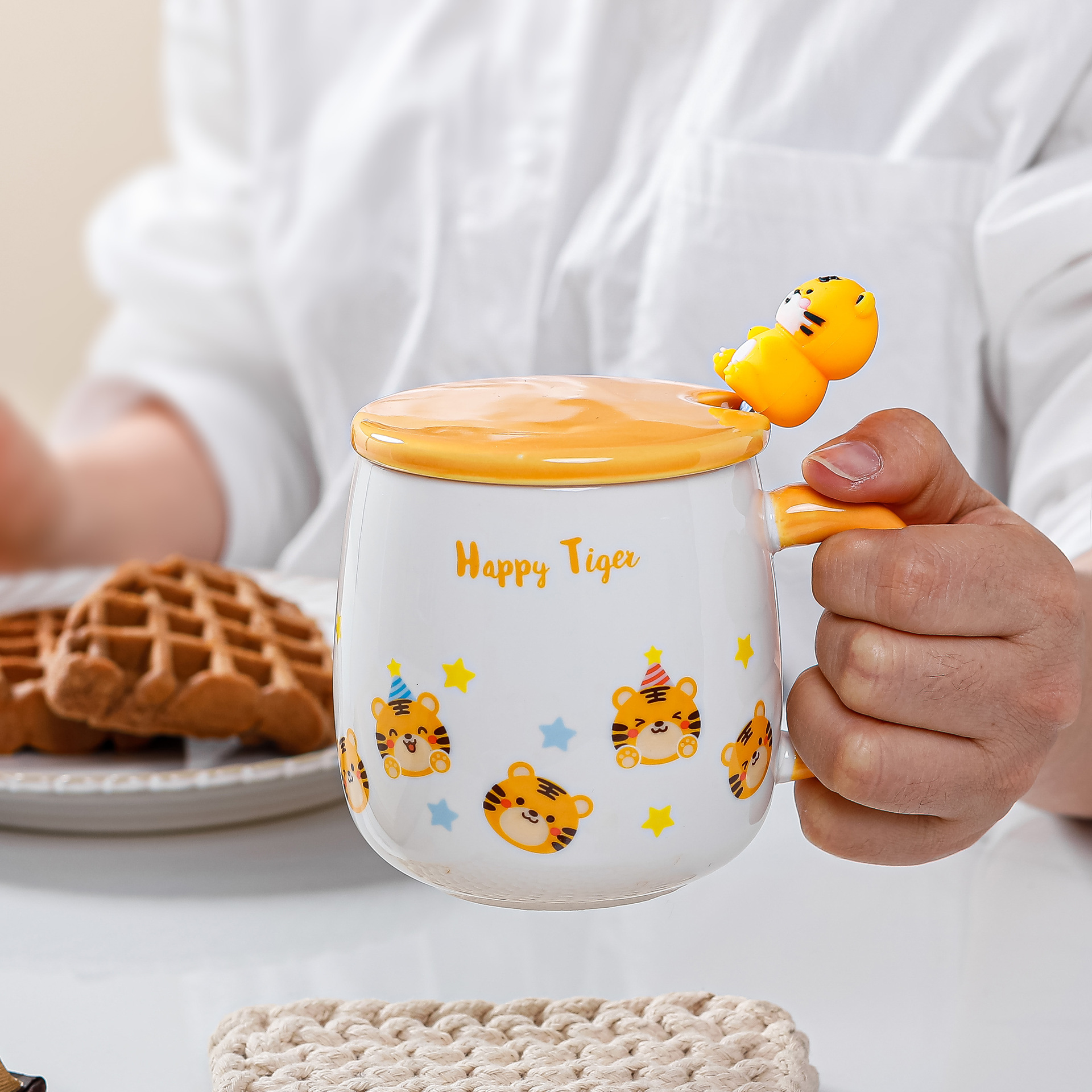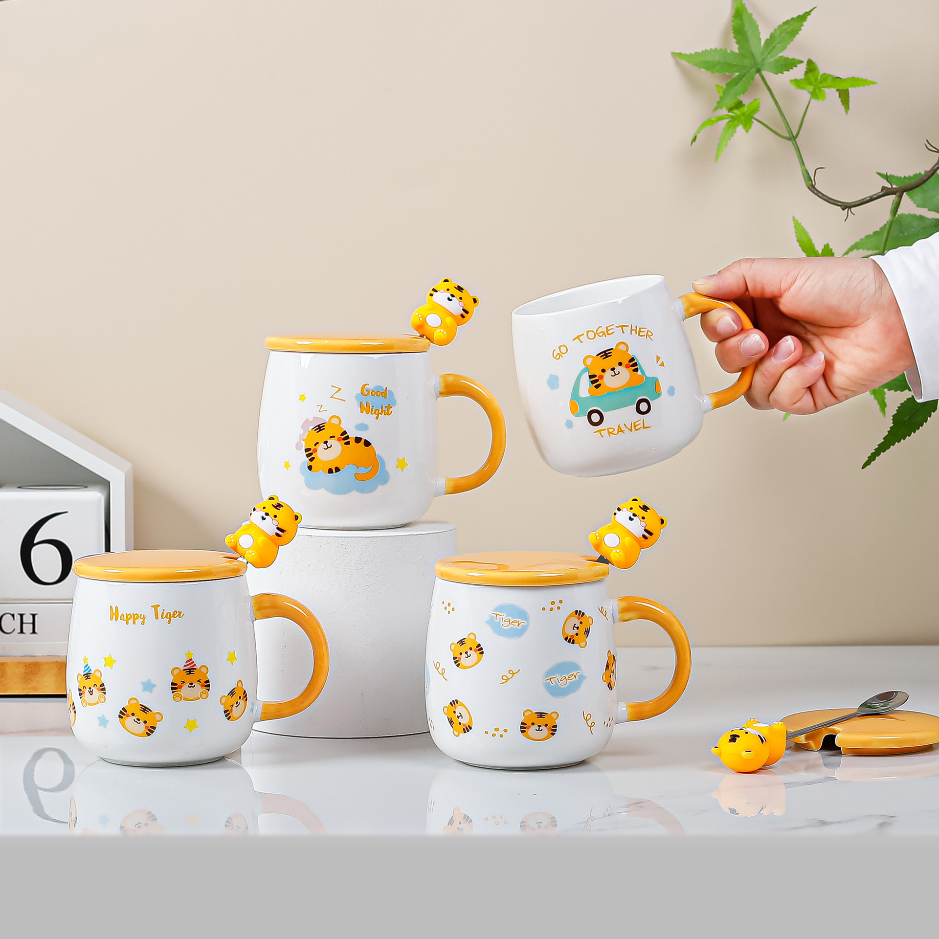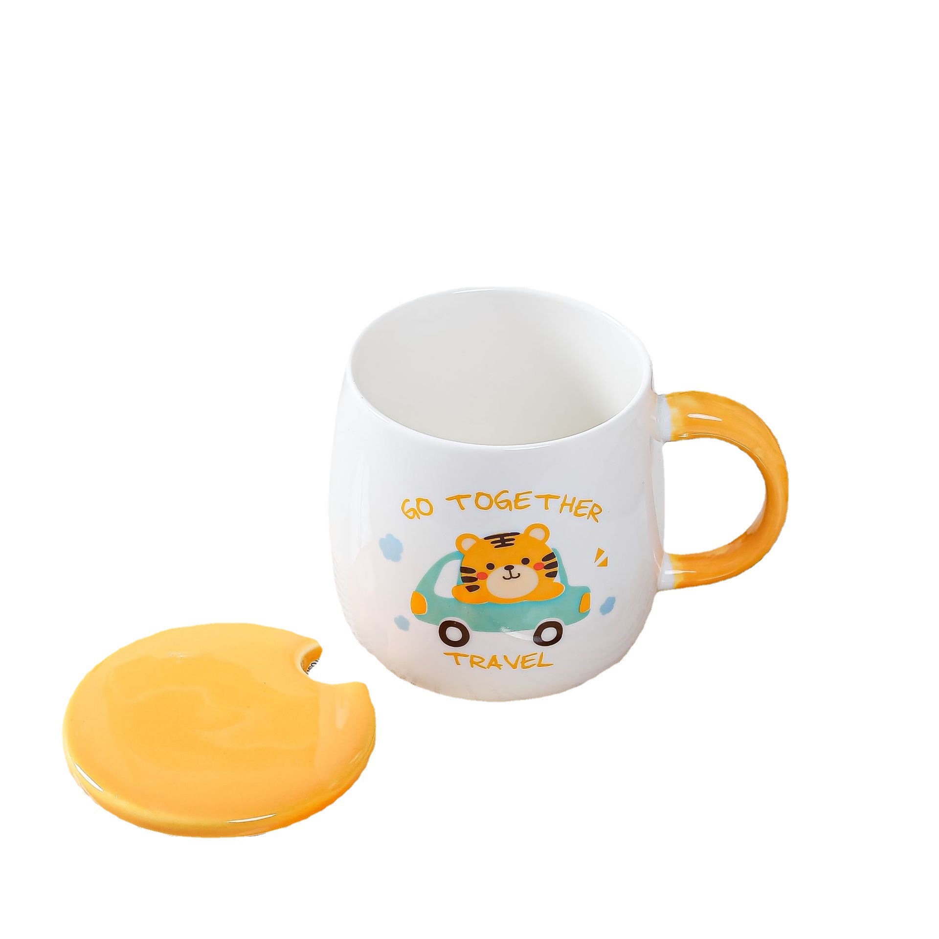 带盖卡通立体浮雕大象陶瓷杯办公家用马克杯咖啡杯高颜值水杯严选