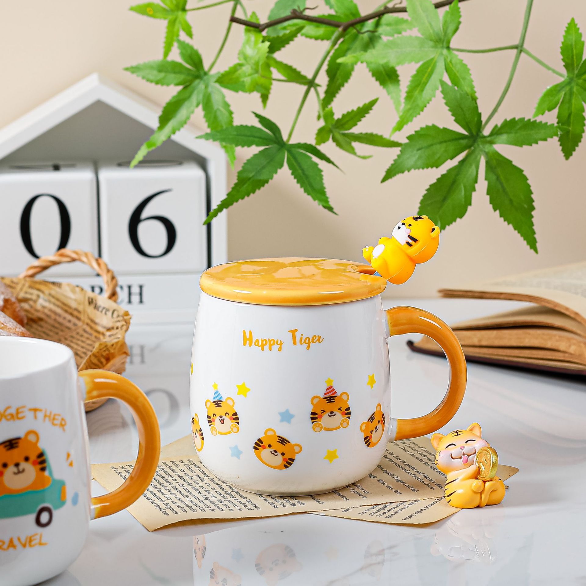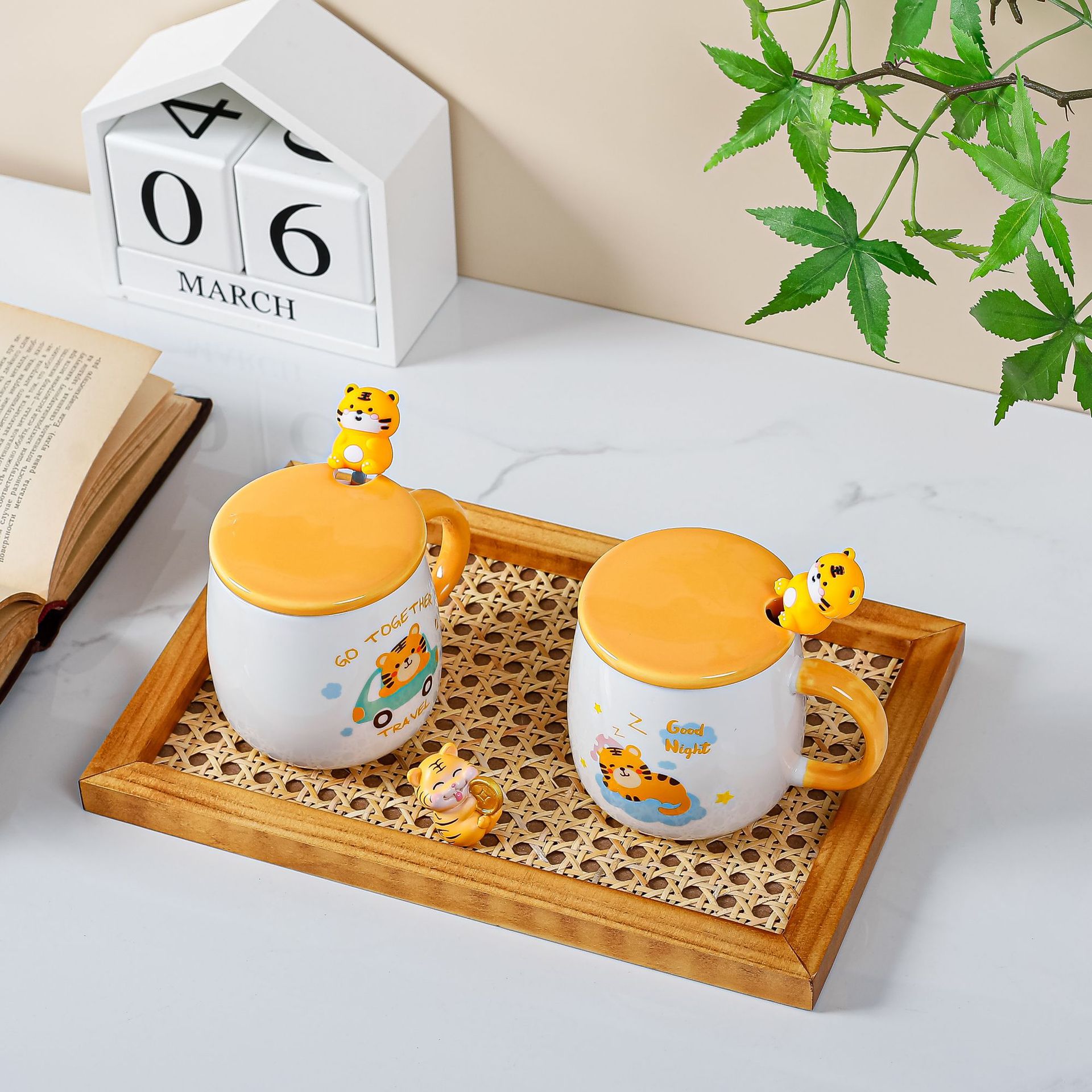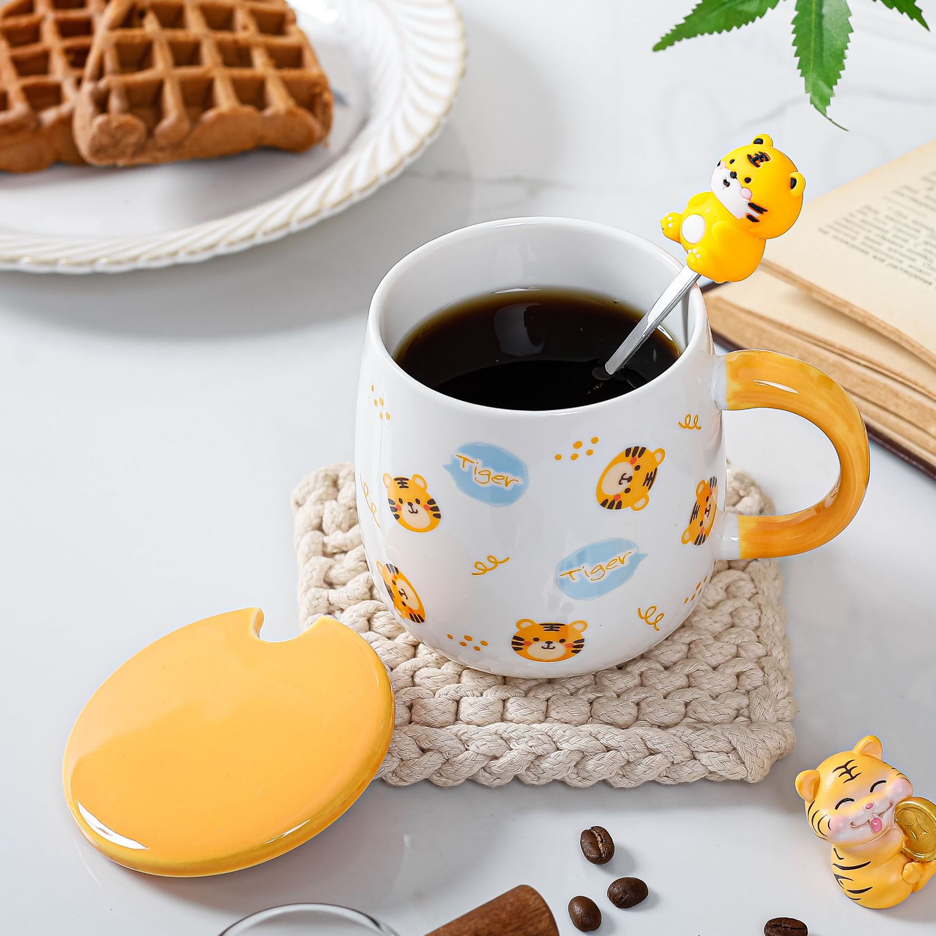 带盖卡通立体浮雕大象陶瓷杯办公家用马克杯咖啡杯高颜值水杯严选