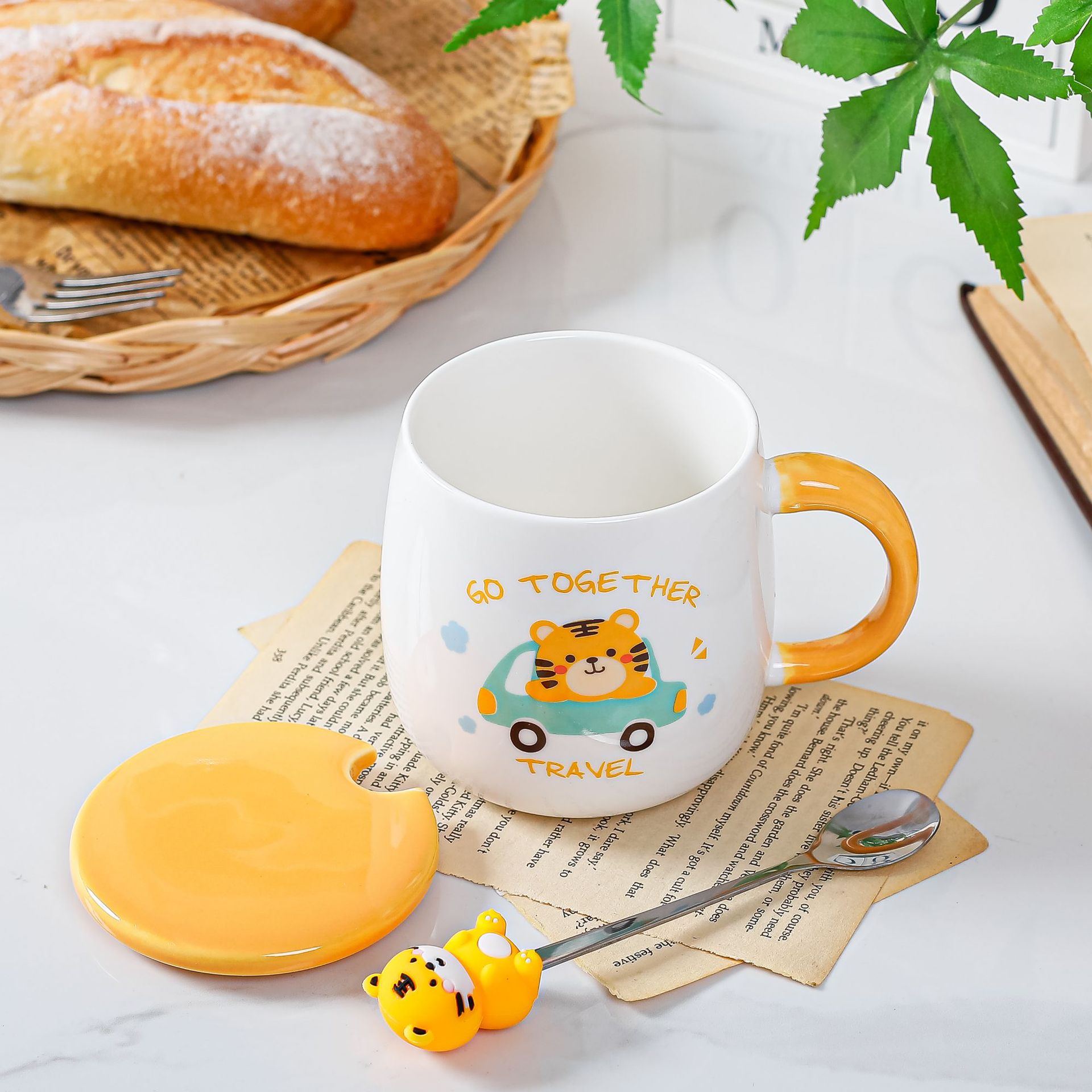 ins风奶油色复古小熊马克杯牛角包陶瓷杯牛奶咖啡杯情侣可加logo