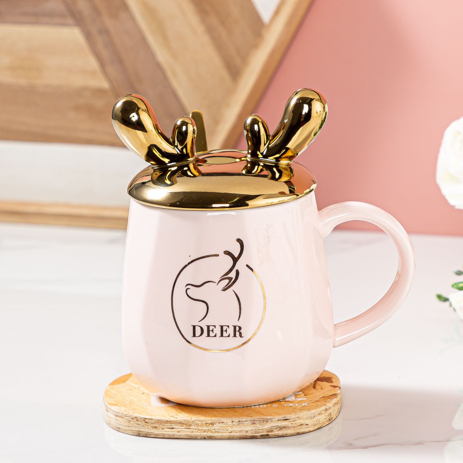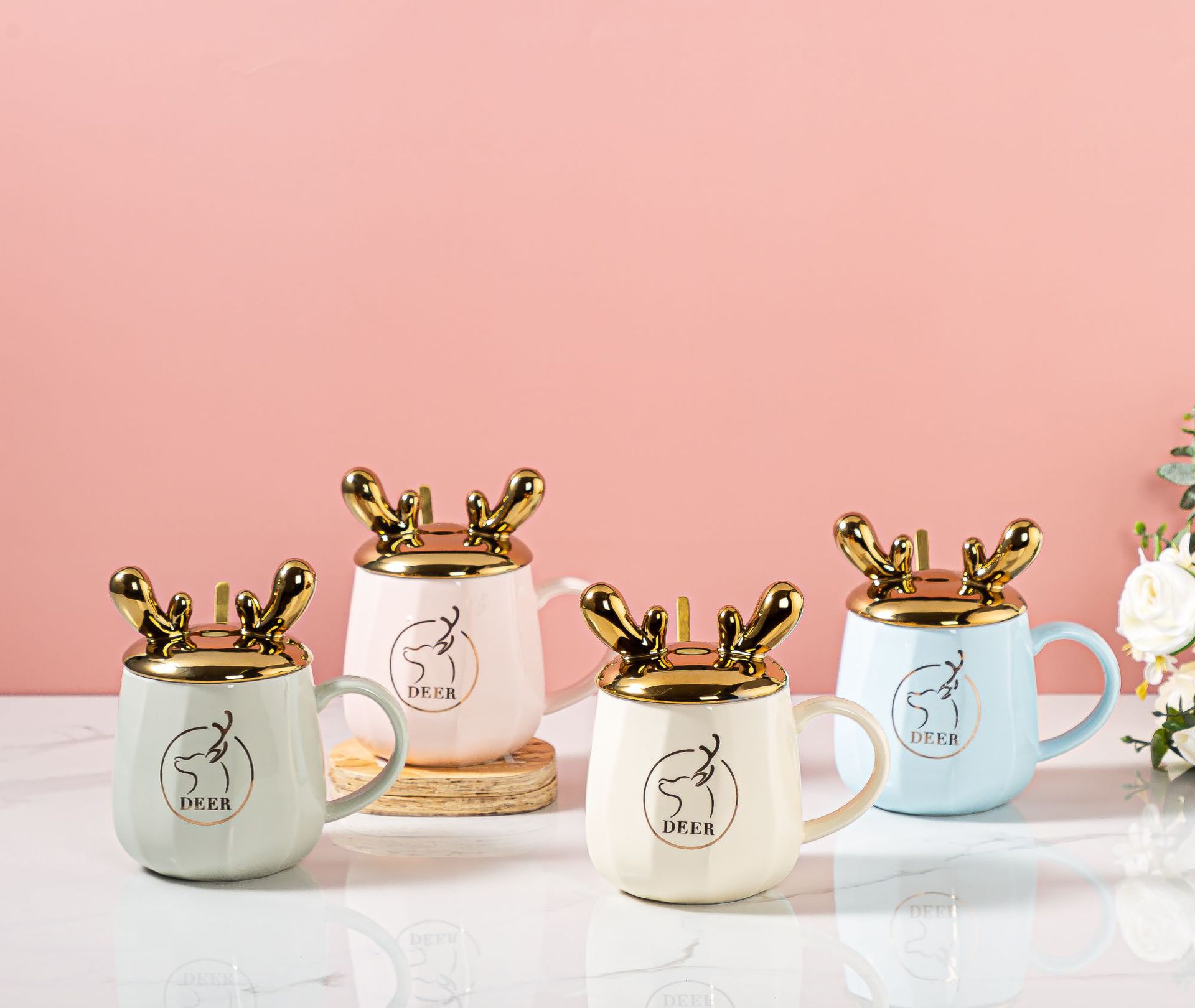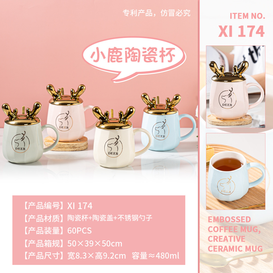 小清新郁金香水杯ins少女心学生带盖勺办公室马克杯家用陶瓷水杯