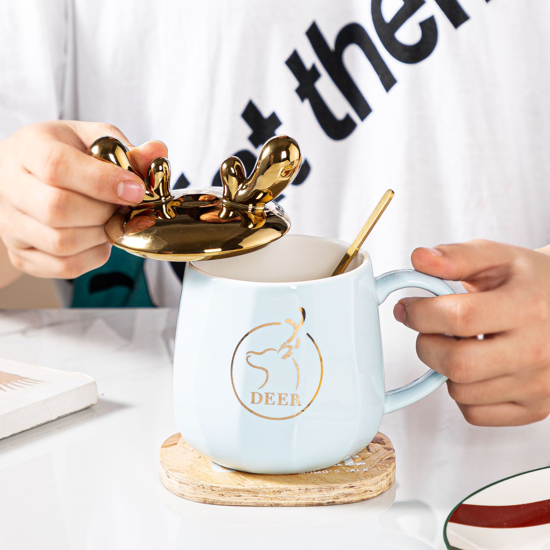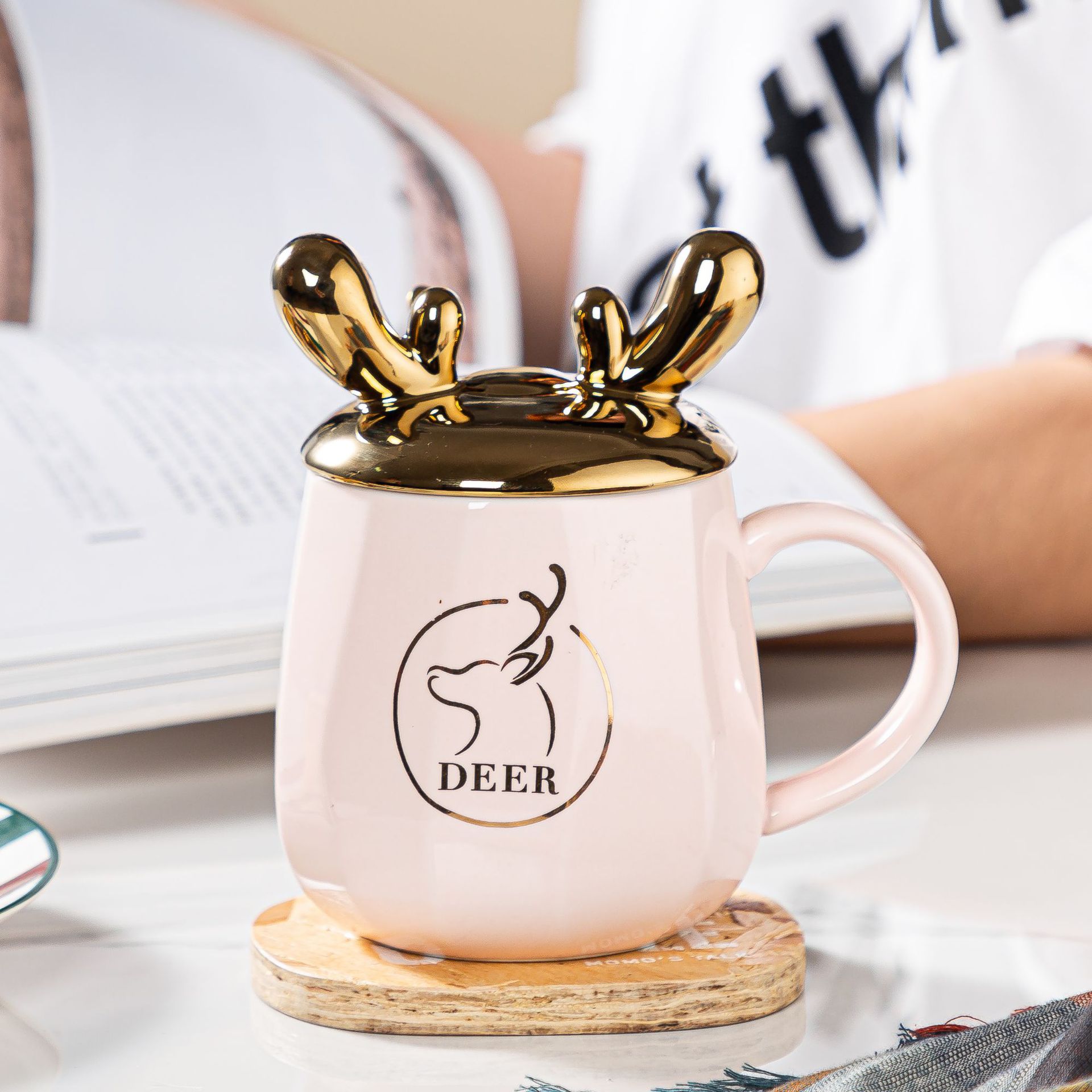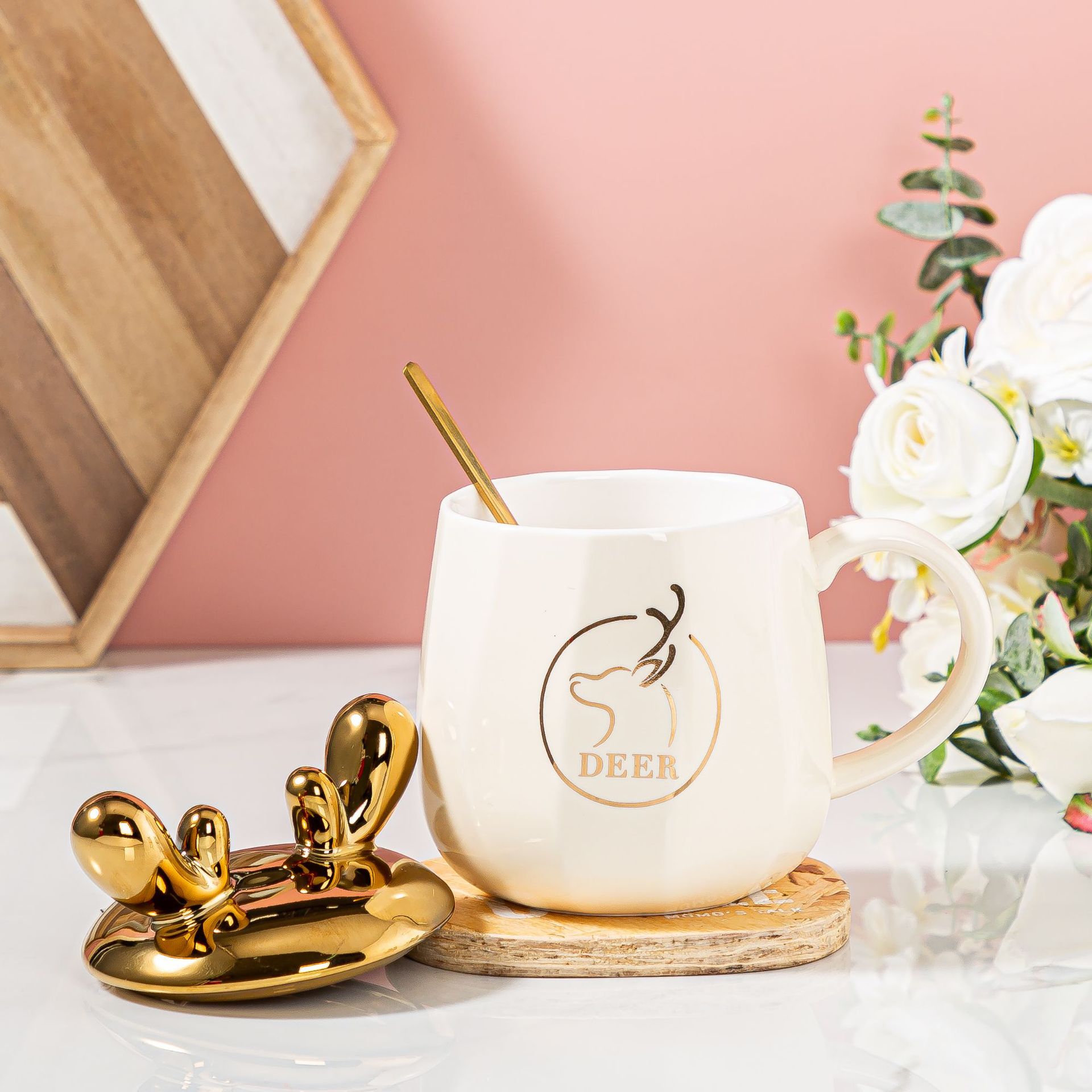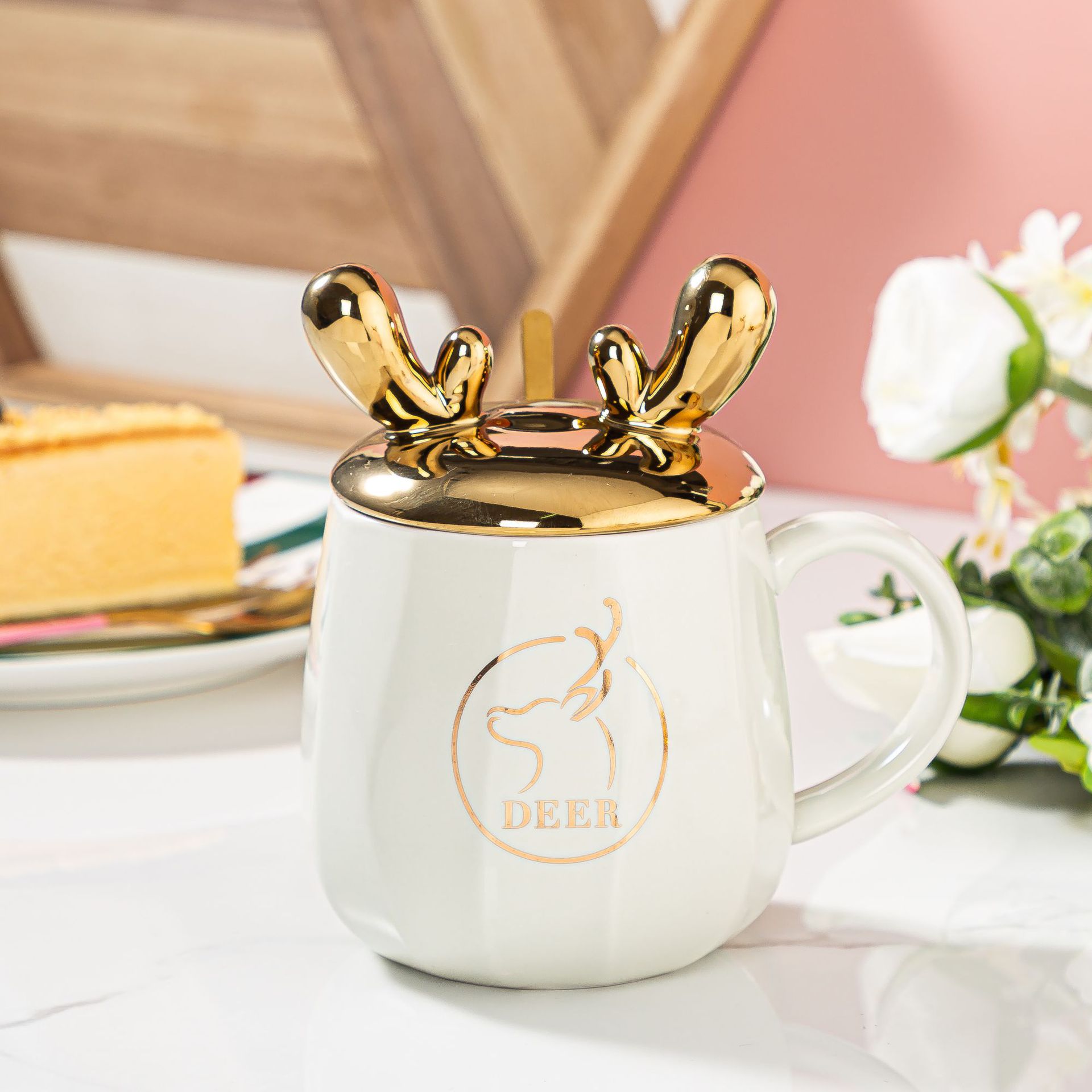 可爱奶fufu马克杯带盖勺创意奶油面包兔陶瓷杯伴手礼家用办公水杯