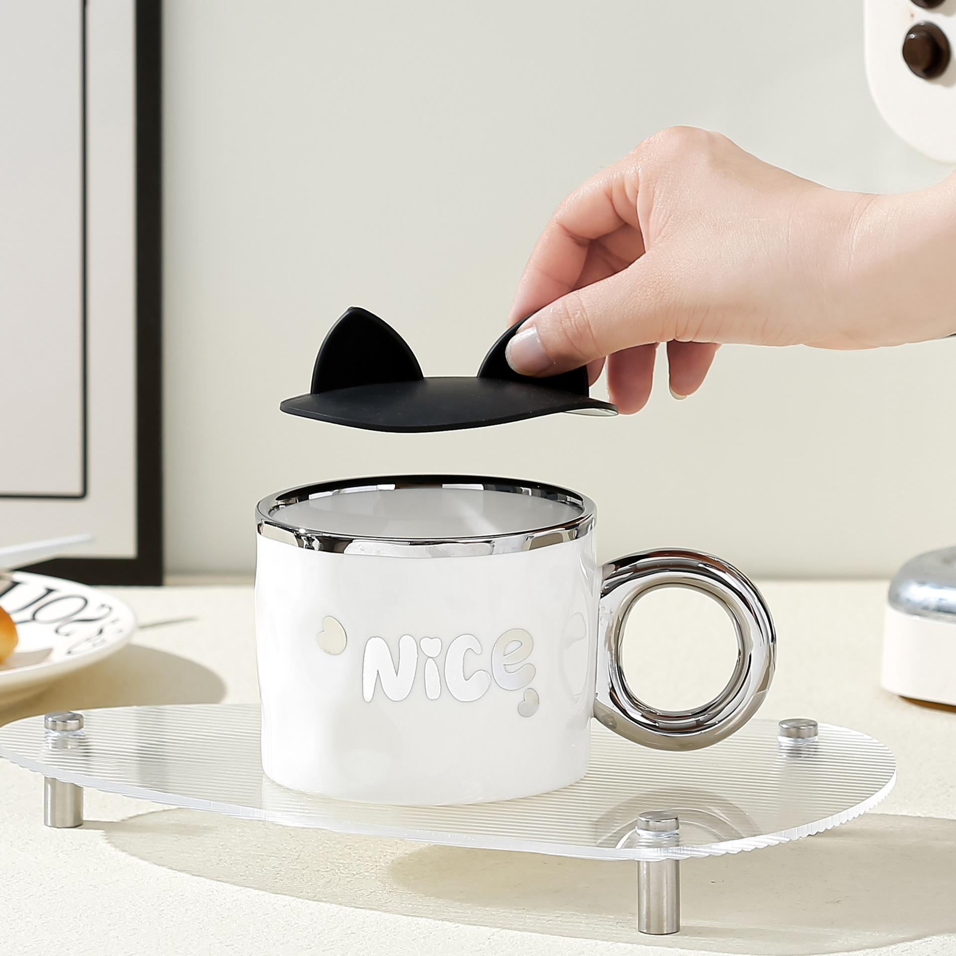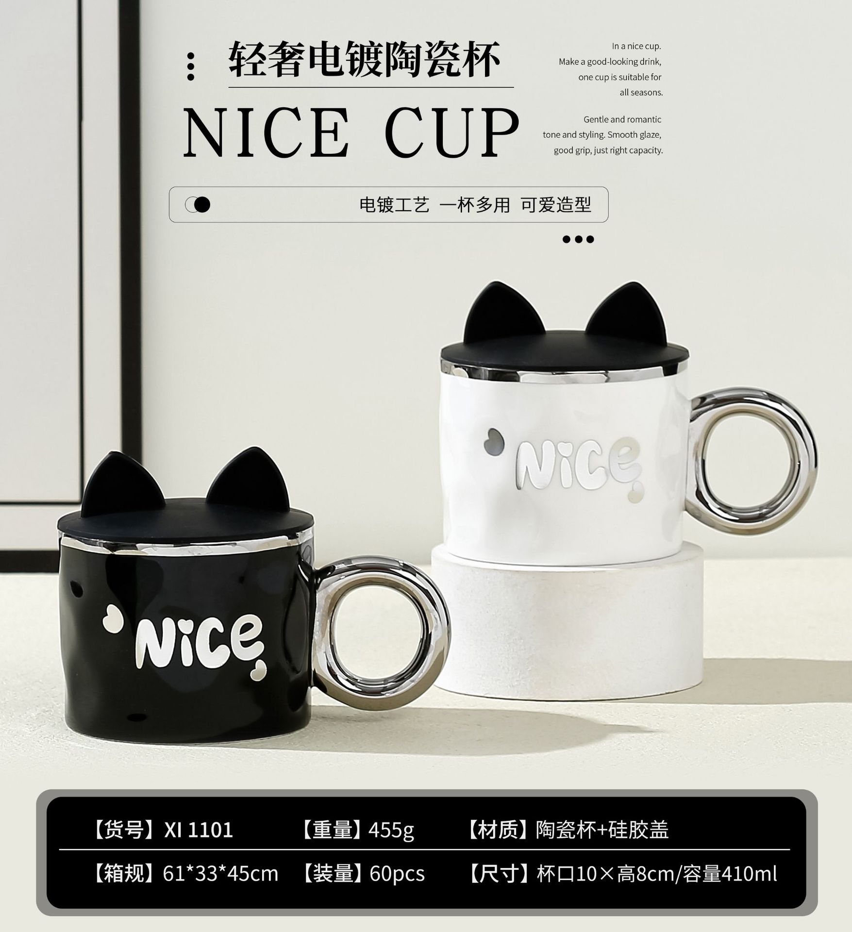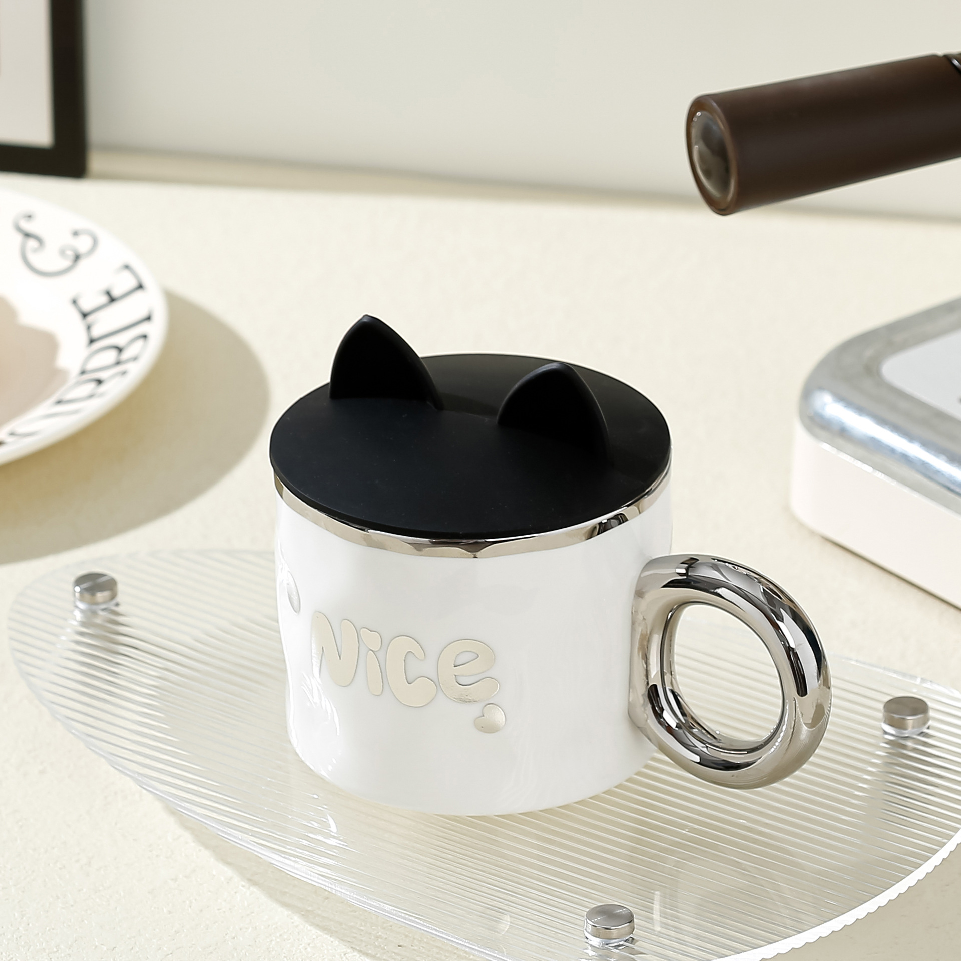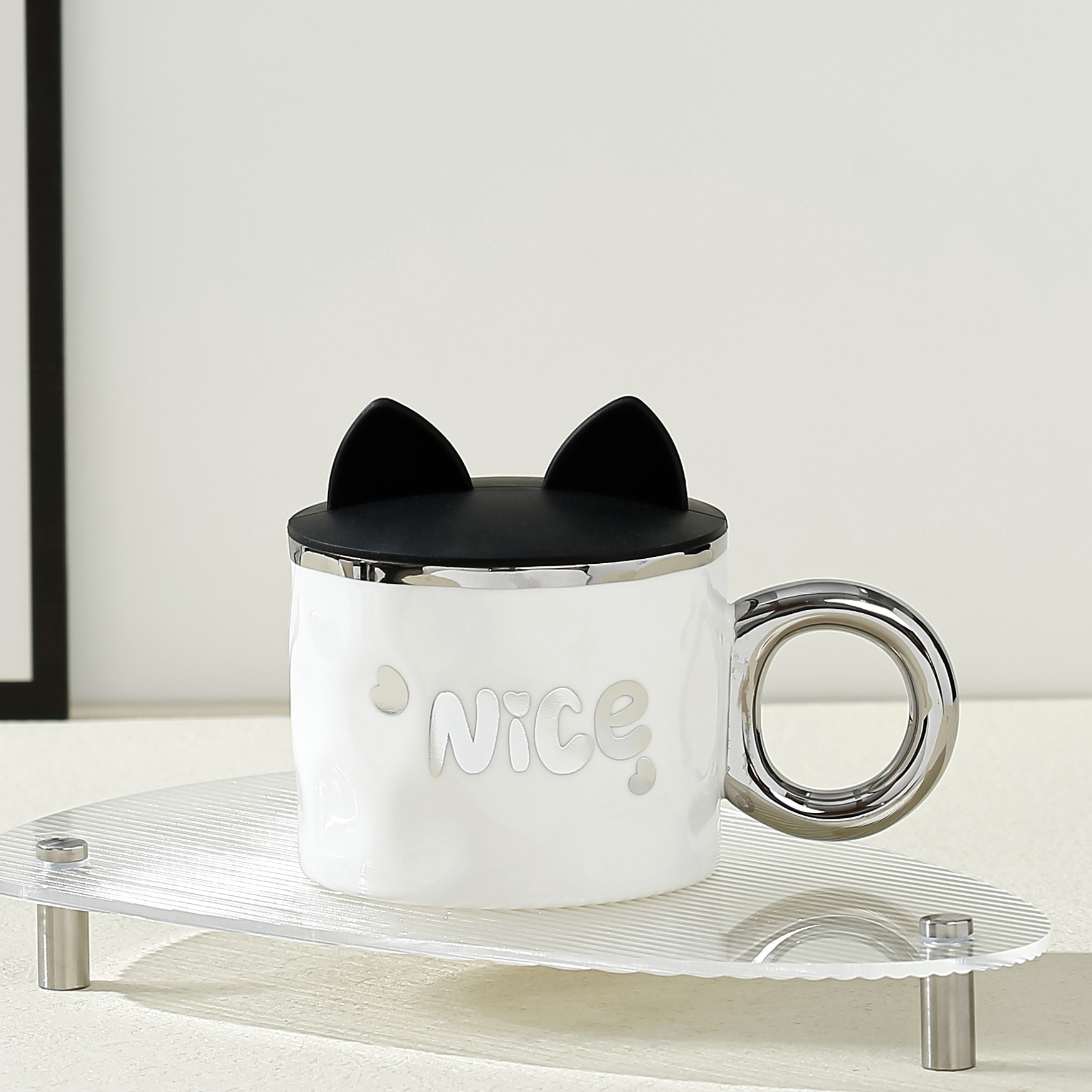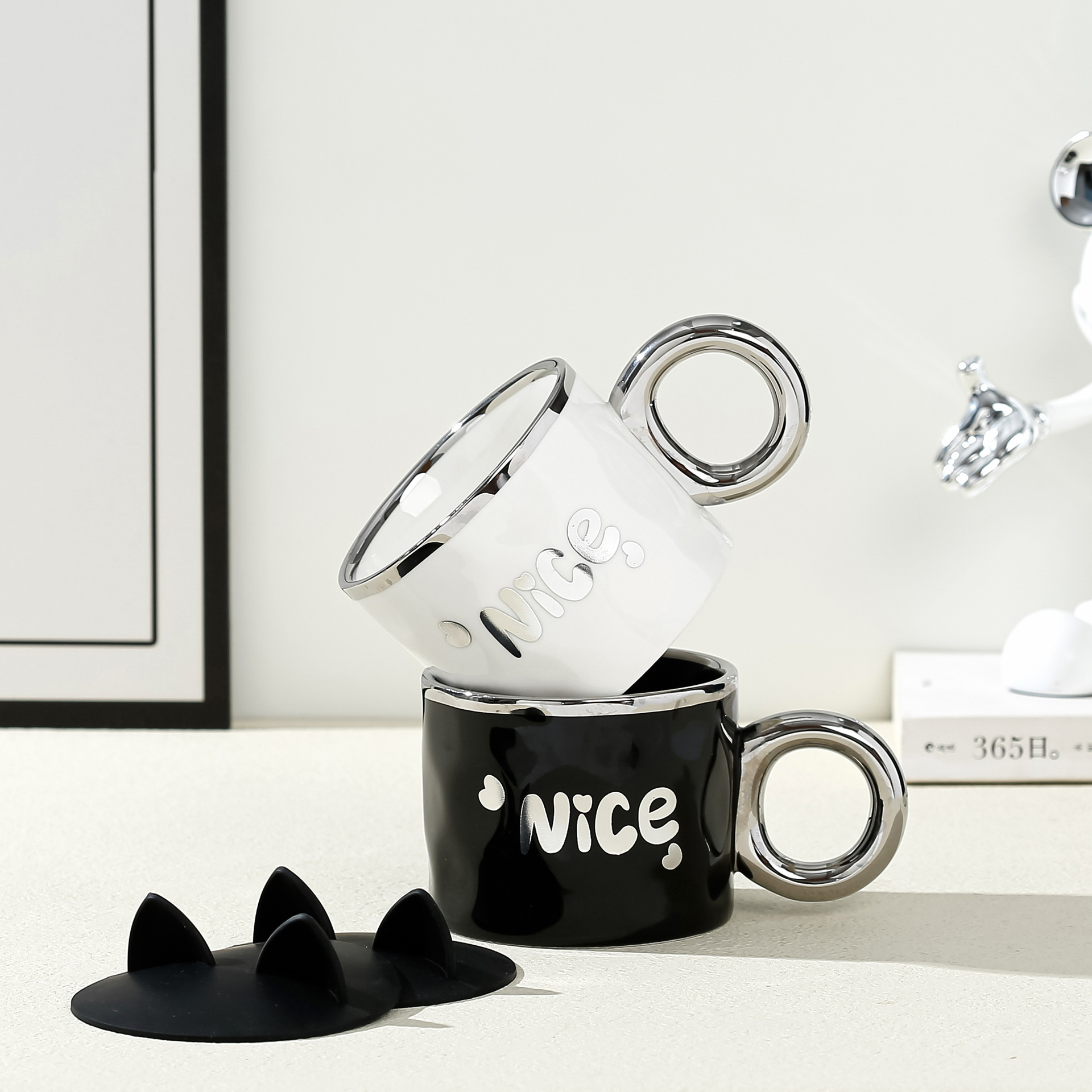 欧式几何创意几何陶瓷杯简约马克杯咖啡杯客户礼品广告logo带盖勺