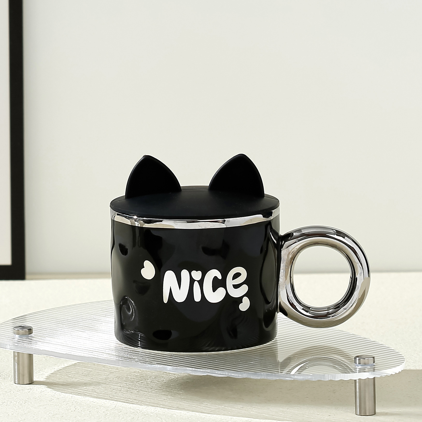 带盖卡通立体浮雕大象陶瓷杯办公家用马克杯咖啡杯高颜值水杯严选