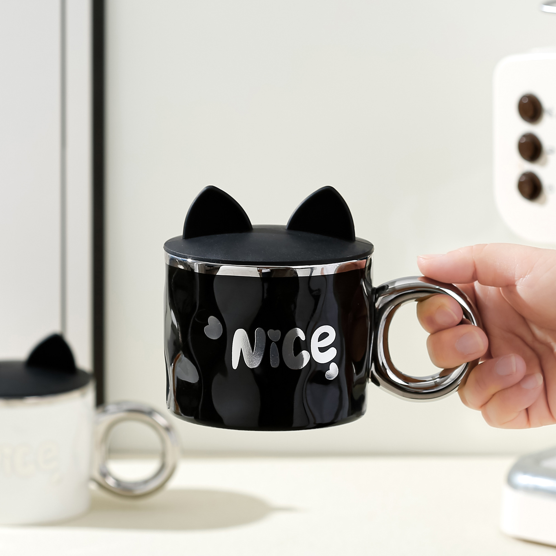 卡通萌虎陶瓷杯创意小老虎马克杯带盖勺子暖暖杯家用情侣杯子