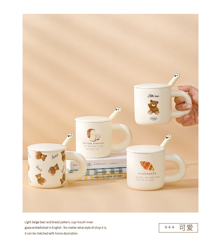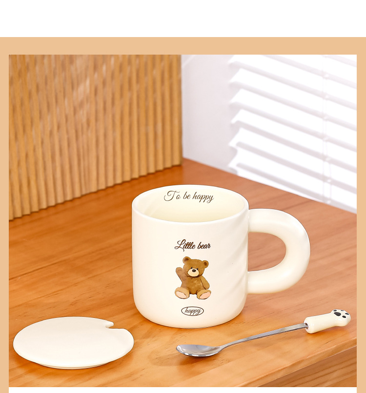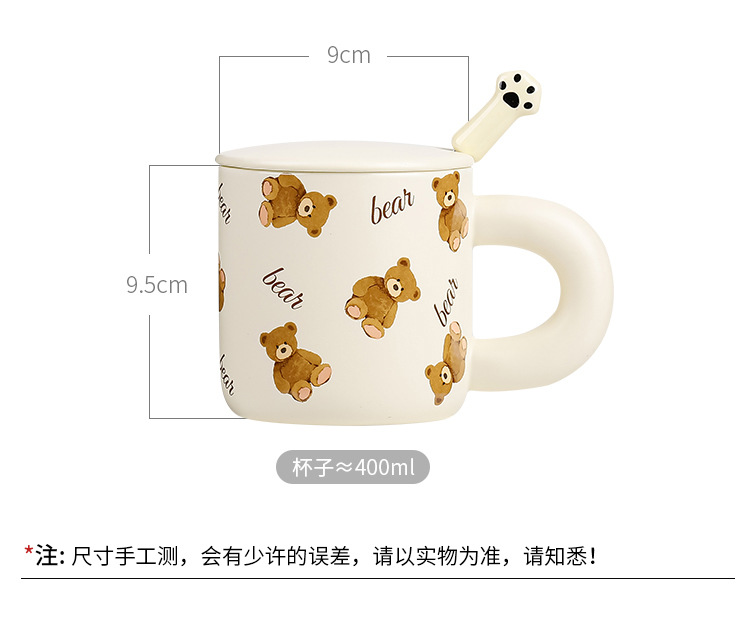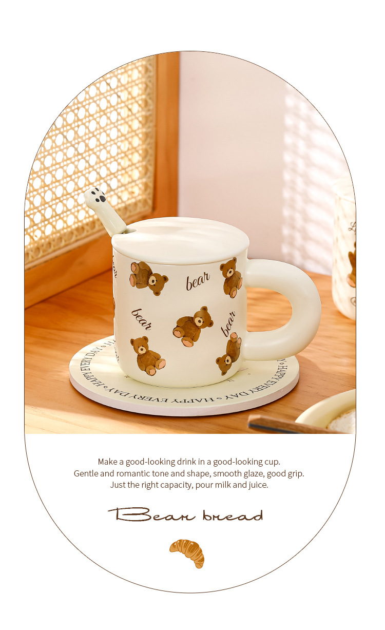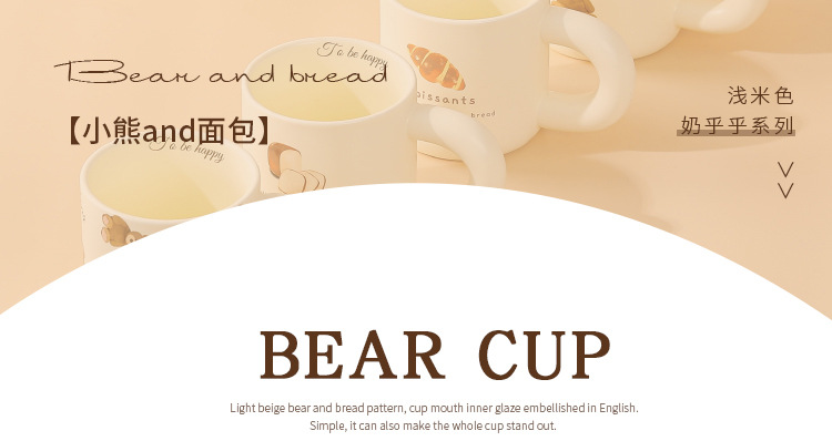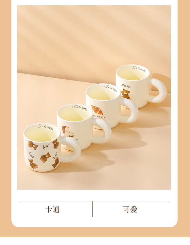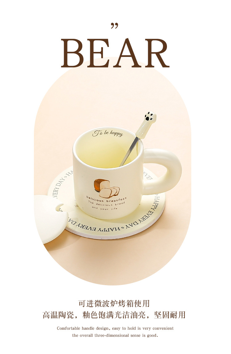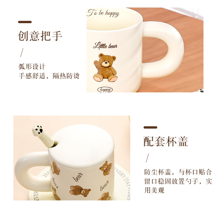 高颜值ins萌熊马克杯艺术创意可爱礼品陶瓷杯办公室家用情侣咖啡