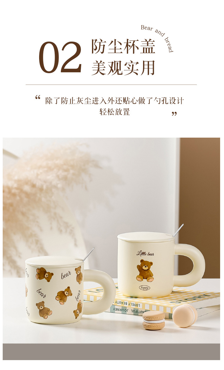创意浮雕带盖马克杯可爱少女心陶瓷杯女生牛奶咖啡杯卡通熊镜面杯