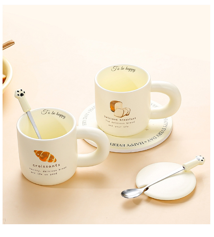 欧式几何创意几何陶瓷杯简约马克杯咖啡杯客户礼品广告logo带盖勺