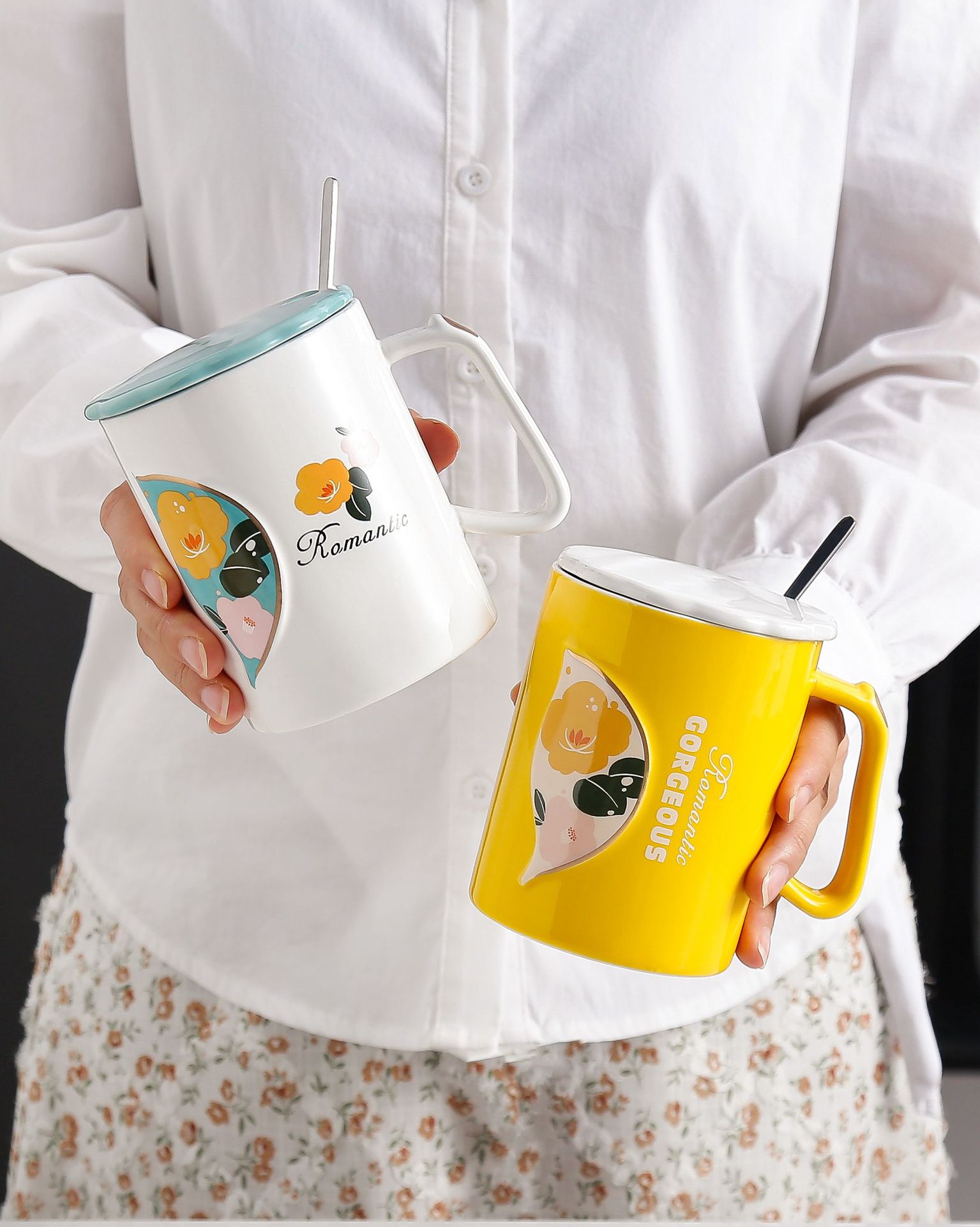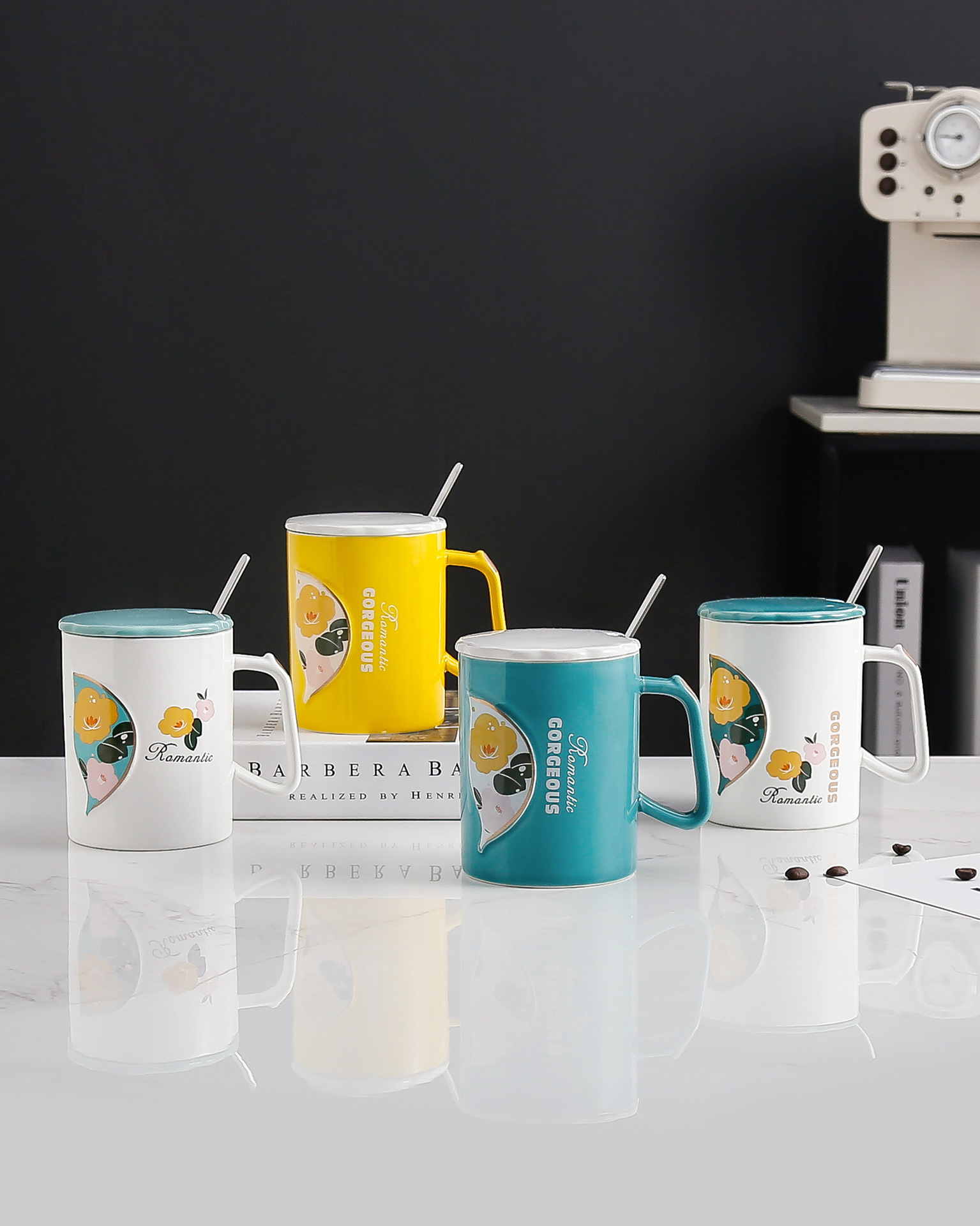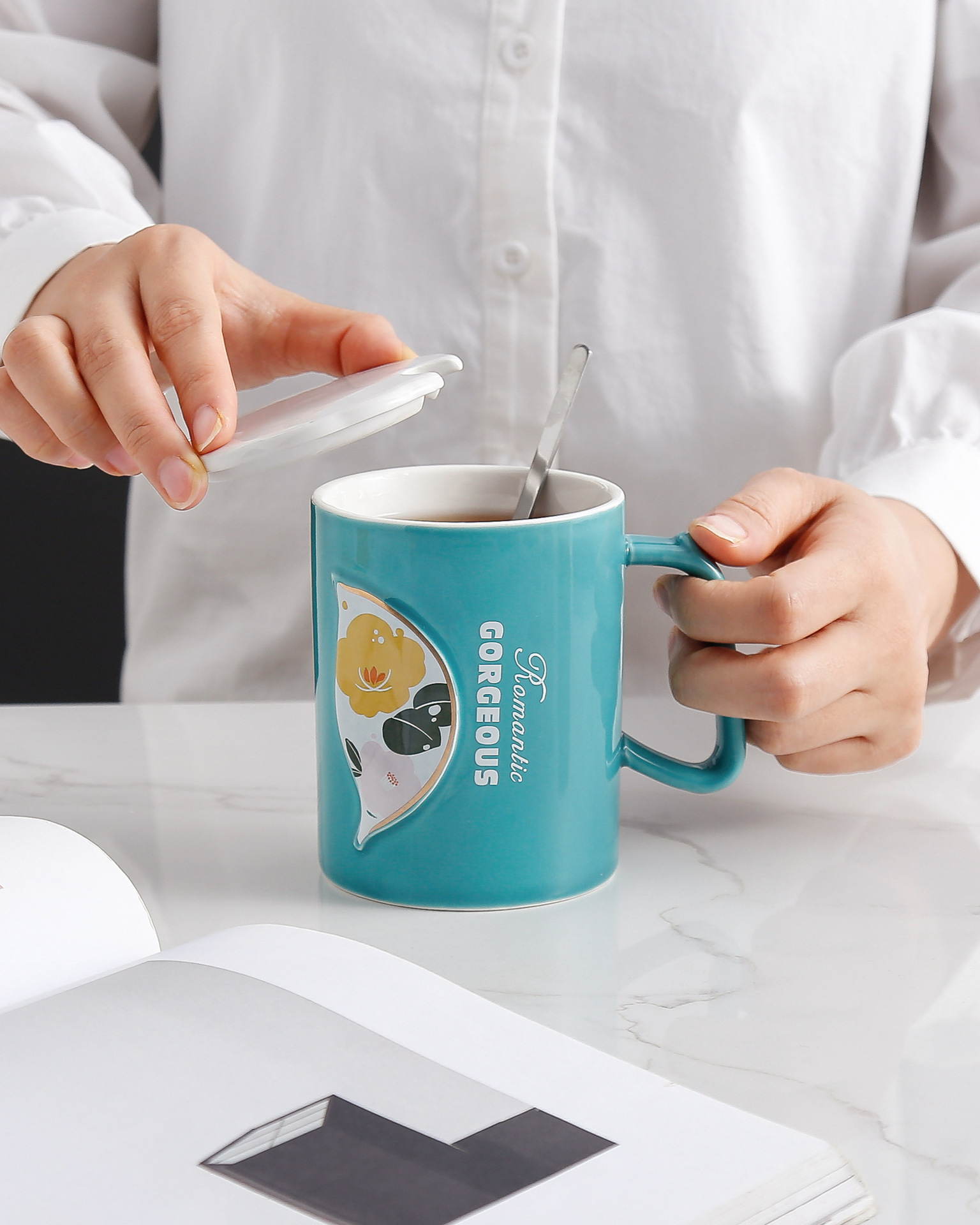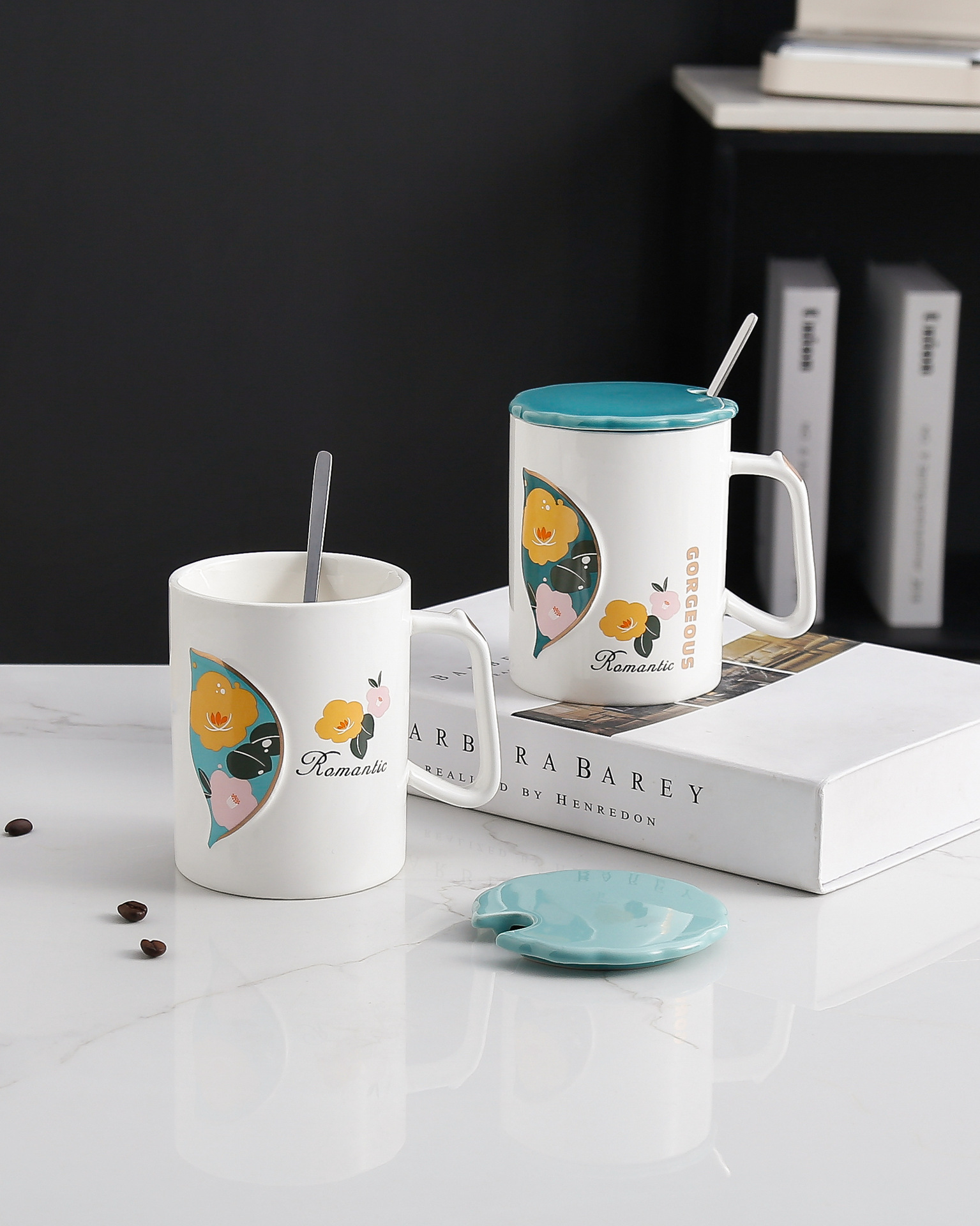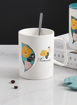 北欧ins风陶瓷杯带盖家用办公室咖啡杯情侣水杯高颜值礼品马克杯