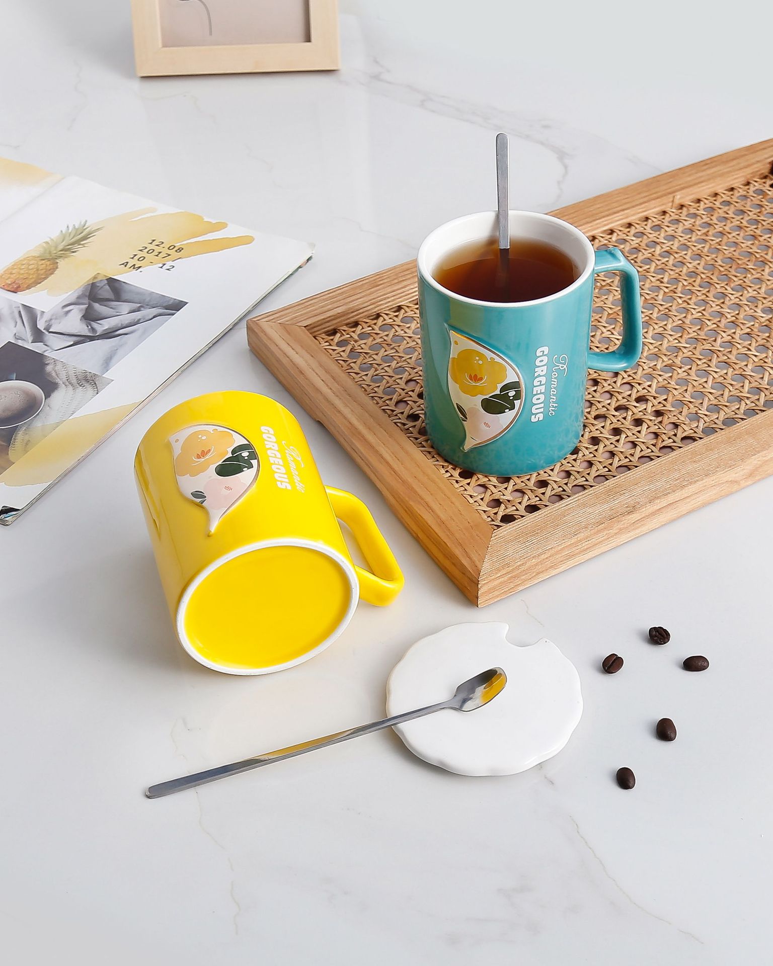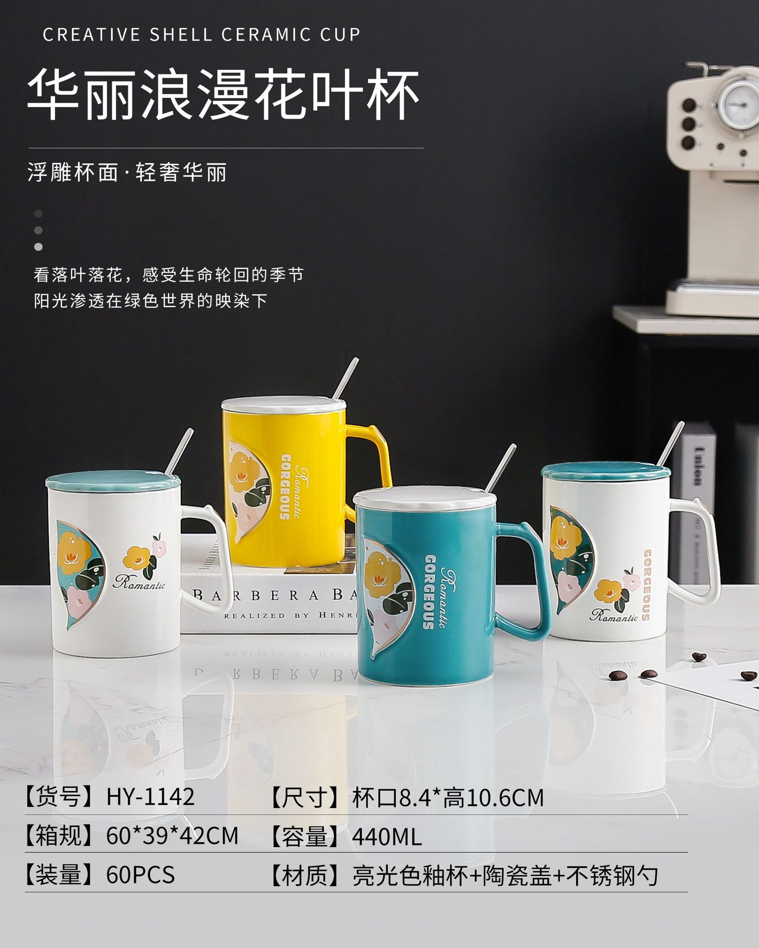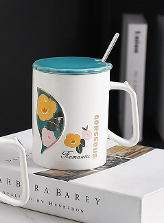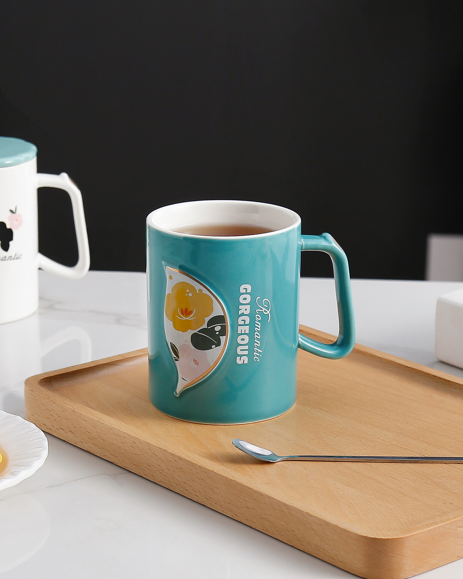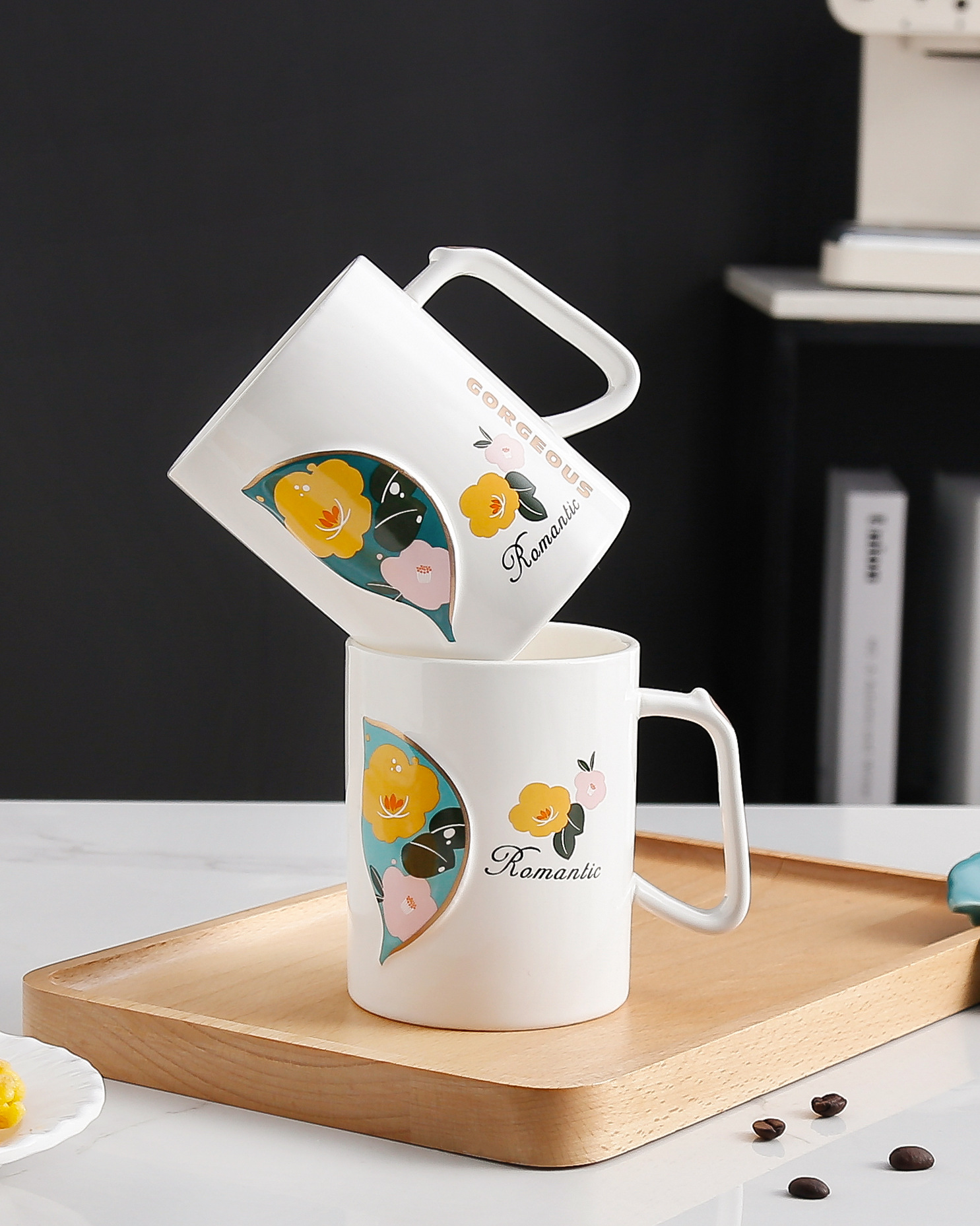 北欧ins风陶瓷杯带盖家用办公室咖啡杯情侣水杯高颜值礼品马克杯