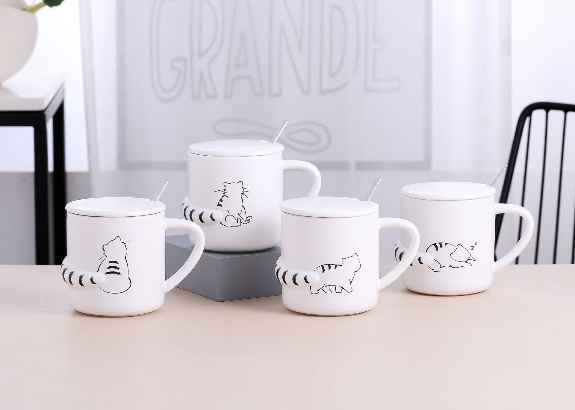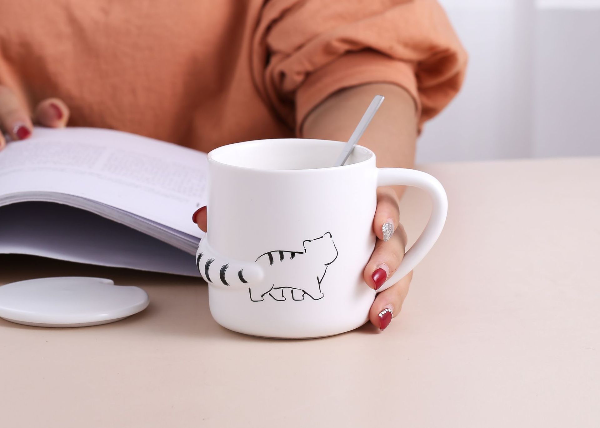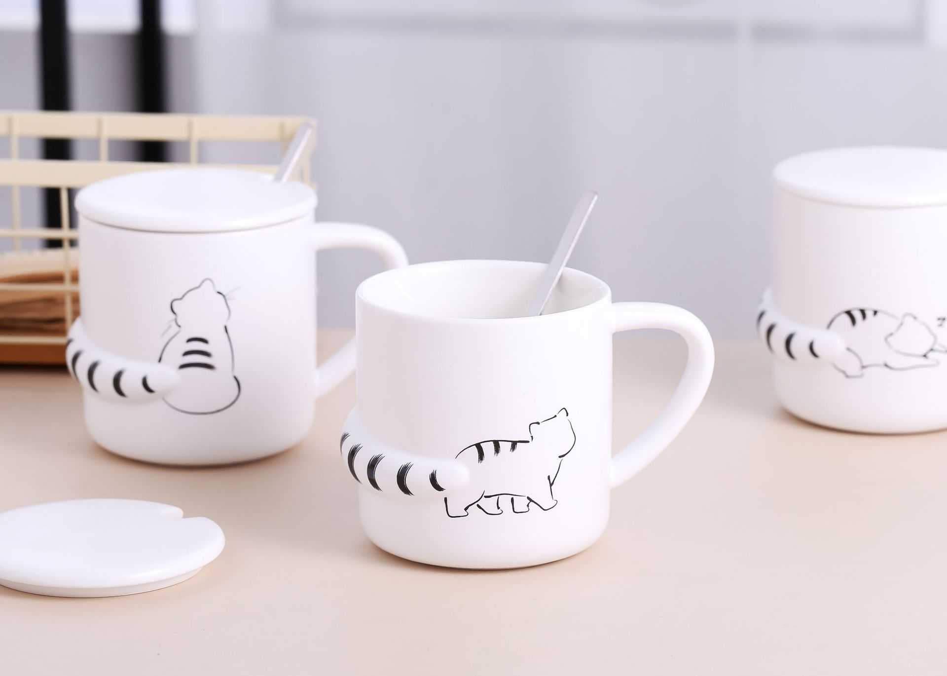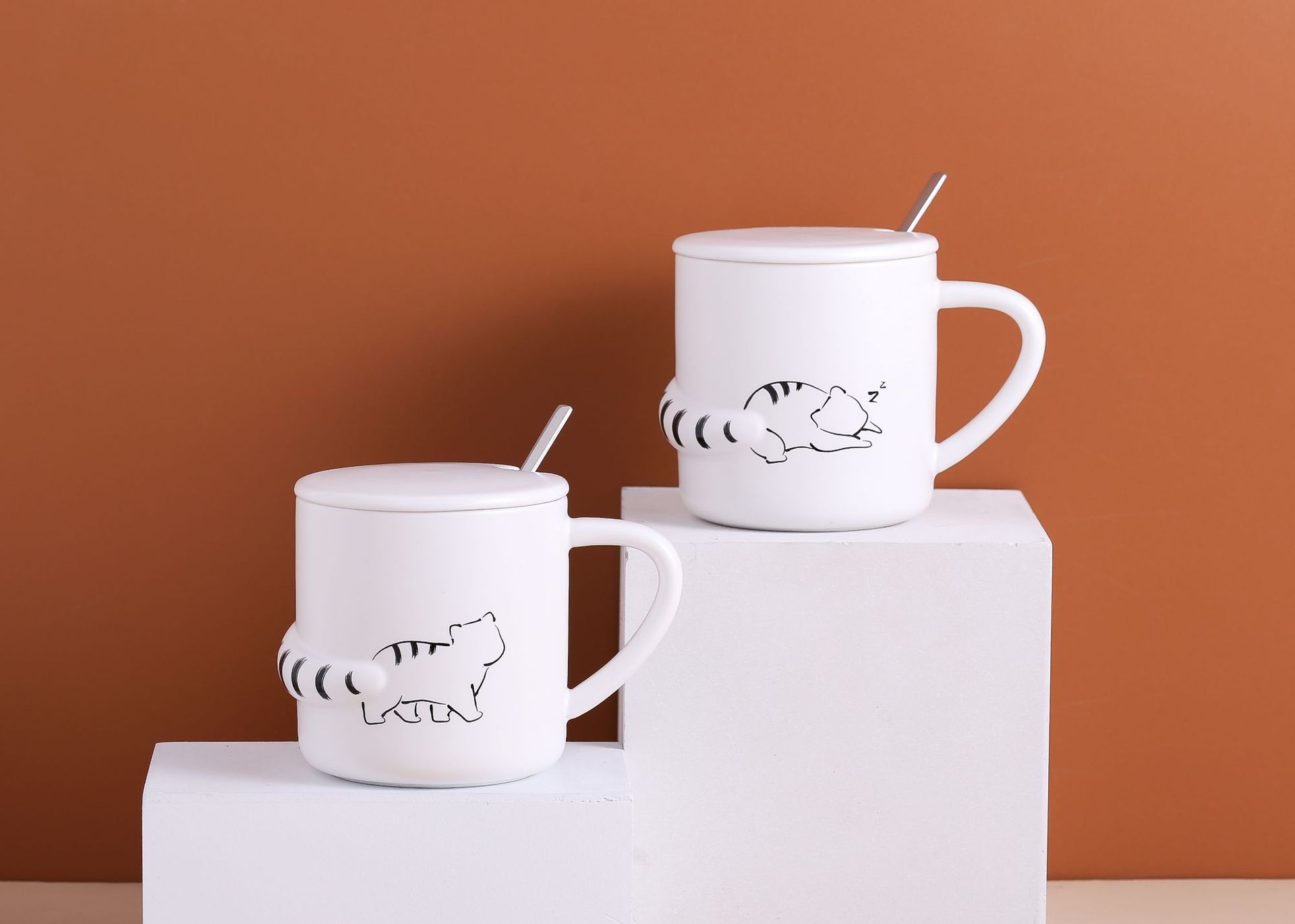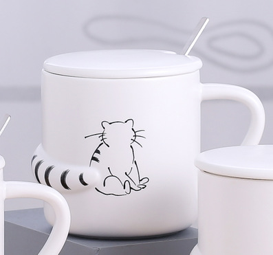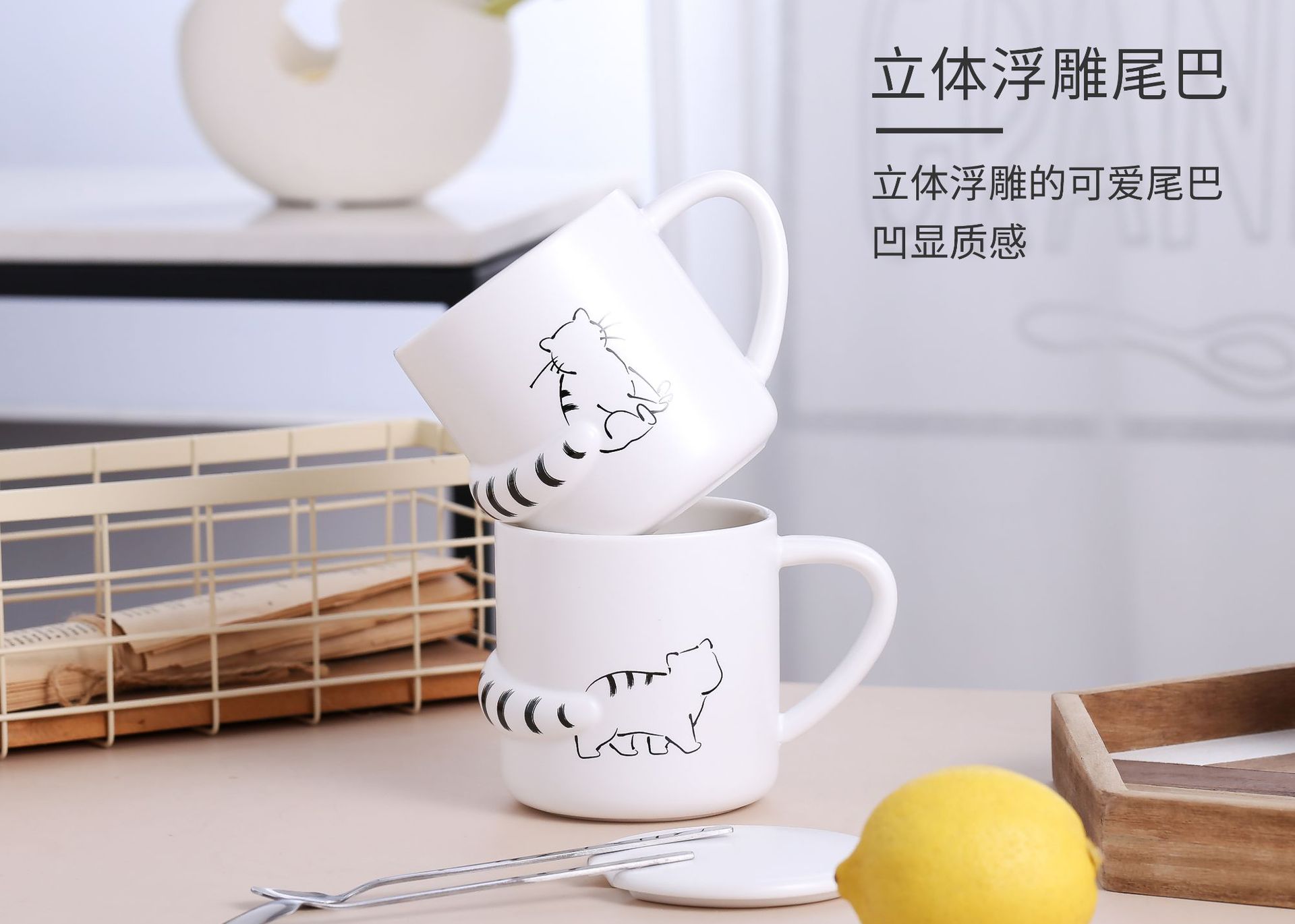 卡通超萌小老虎马克杯虎年陶瓷水杯带盖带勺家用办公室早餐咖啡杯