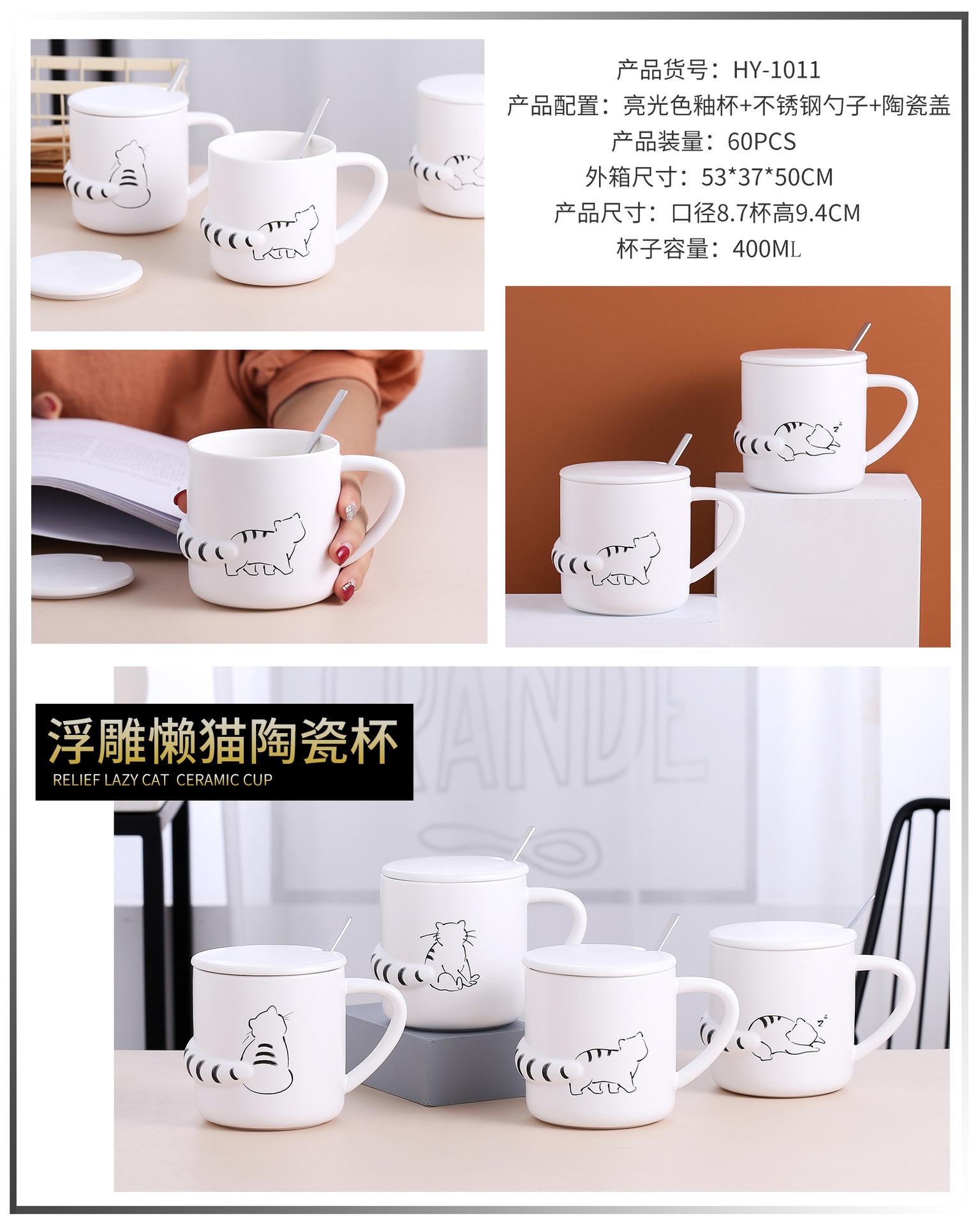 浮雕萌趣猫咪卡通杯颜色多样供您选择可加印logo日用百货水杯批发