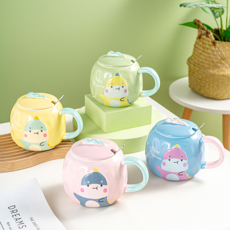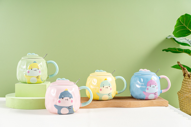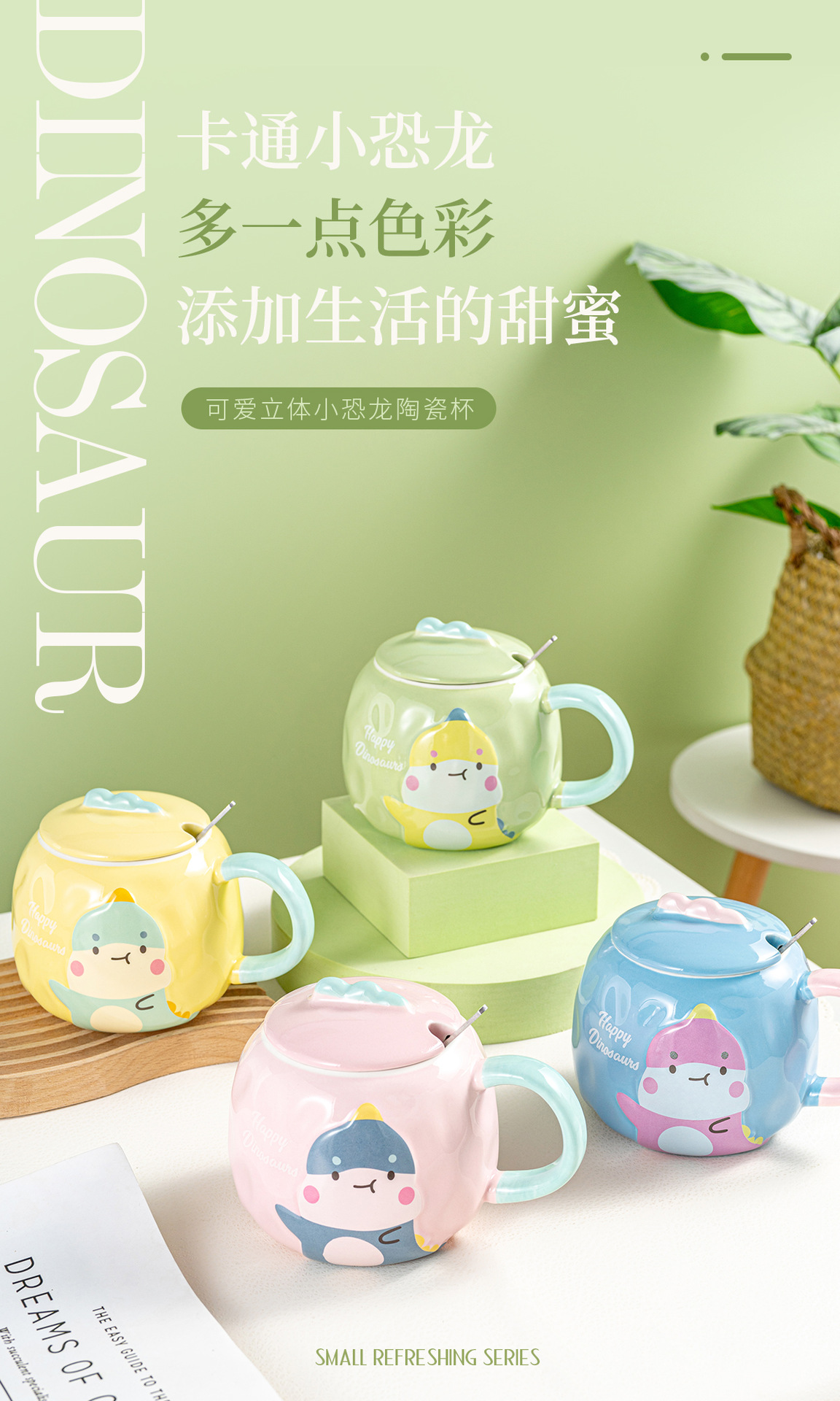 创意水杯套装小恐龙高颜值陶瓷水杯家用客厅水壶耐高温水具礼品套