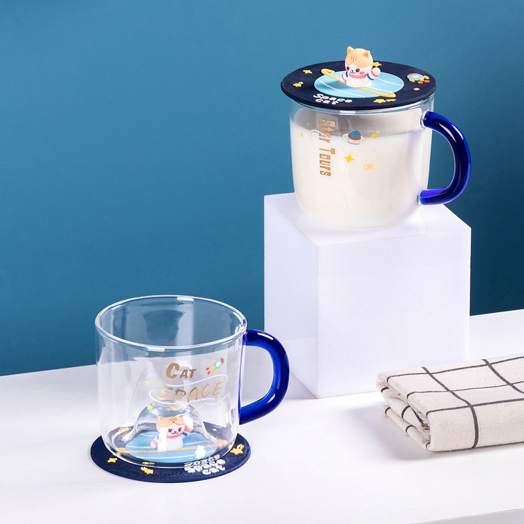 时尚创意木纹盖高硼硅玻璃杯简约男女办公室水杯户外礼品杯可批发