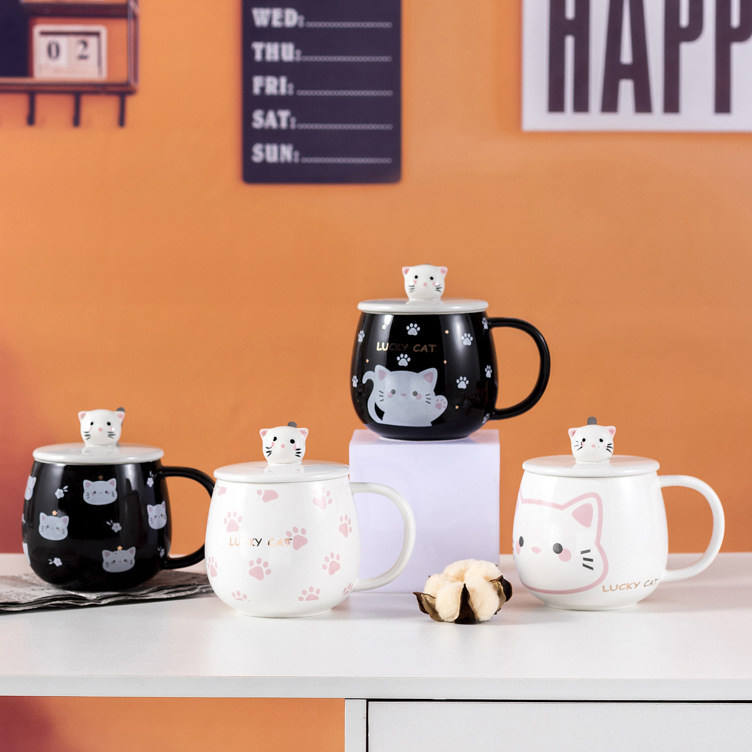 陶瓷卡通杯带盖马克杯创意可爱猫咪水杯家用办公室咖啡杯水杯带盖