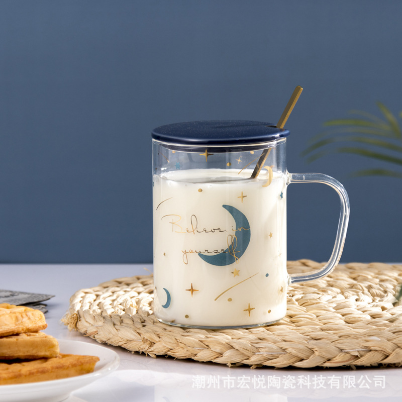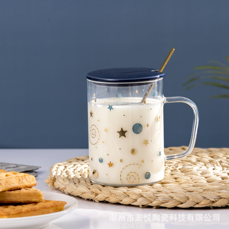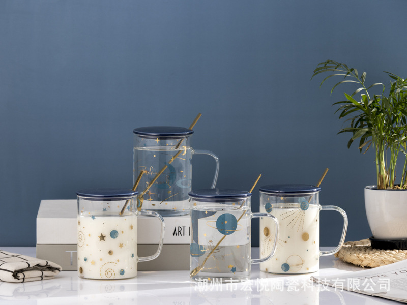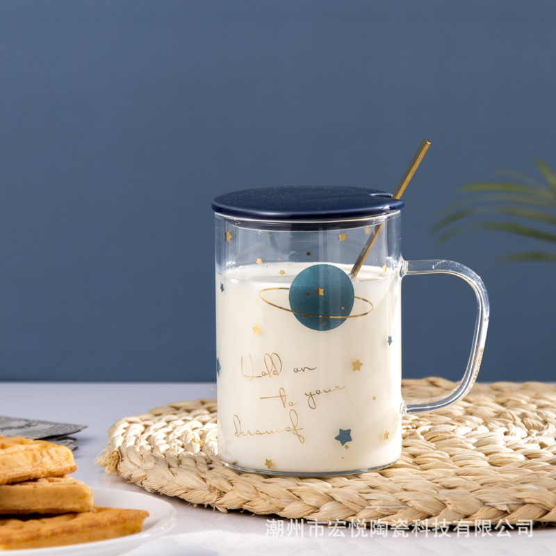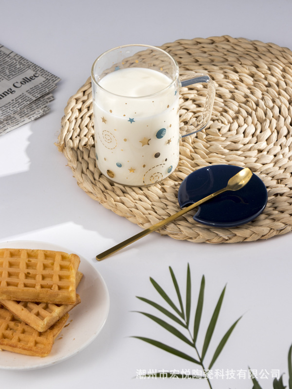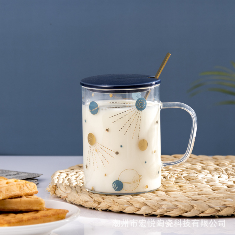 创意水杯可爱猫咪星球杯夏季大容量杯子卡通高颜值陶瓷杯带盖勺子