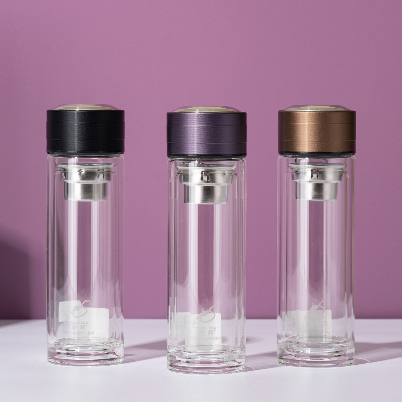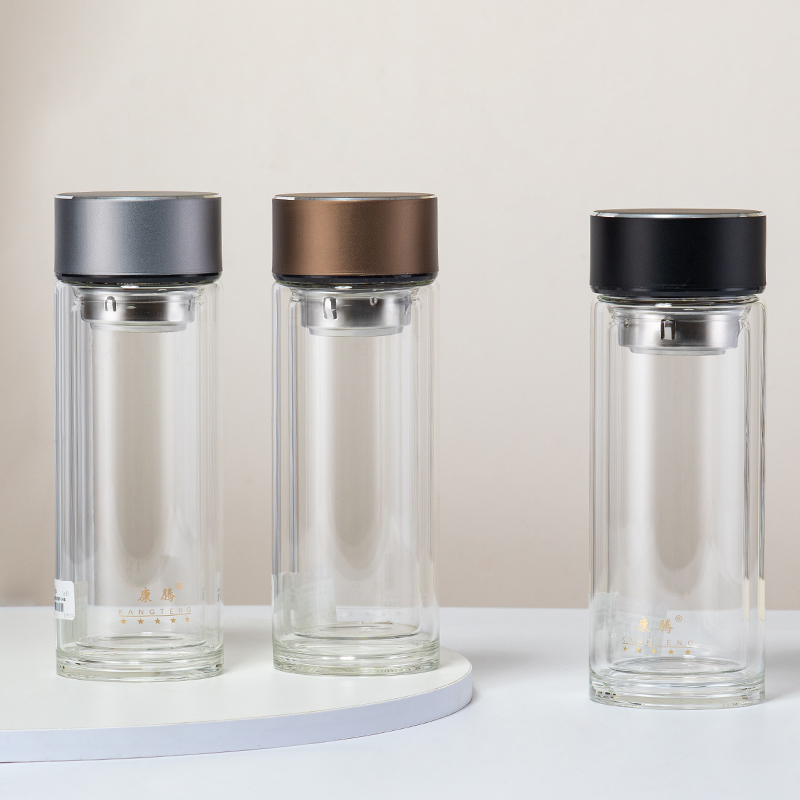 360ML简约商务玻璃杯男士双层泡茶水杯办公礼品杯子