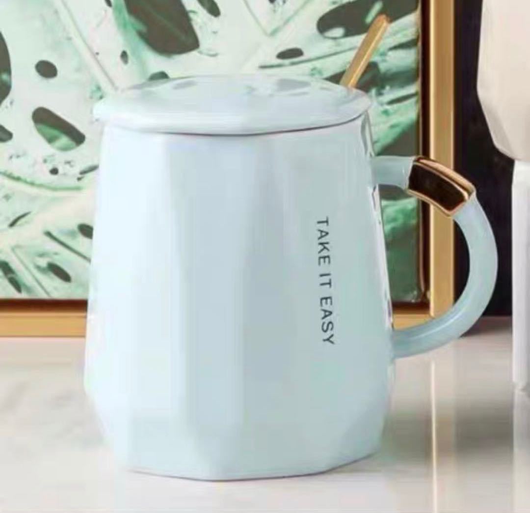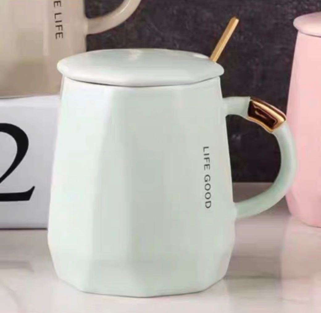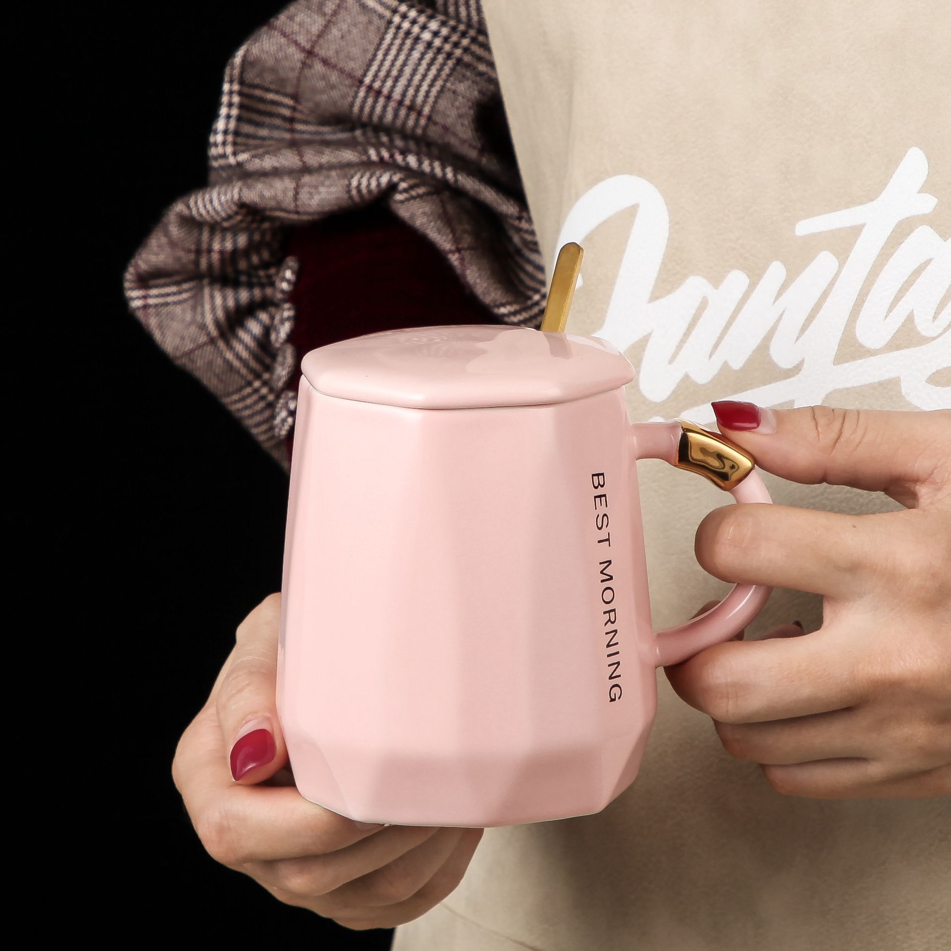 马卡龙色系陶瓷杯家用办公水杯咖啡杯创意高颜值情侣马克杯带盖