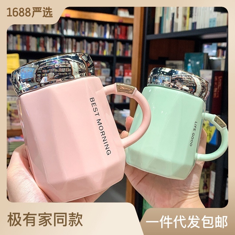 陶瓷杯子高颜值情侣少女心马克杯创意简约咖啡杯ins风家用水杯