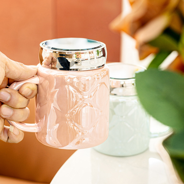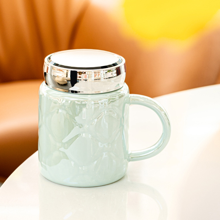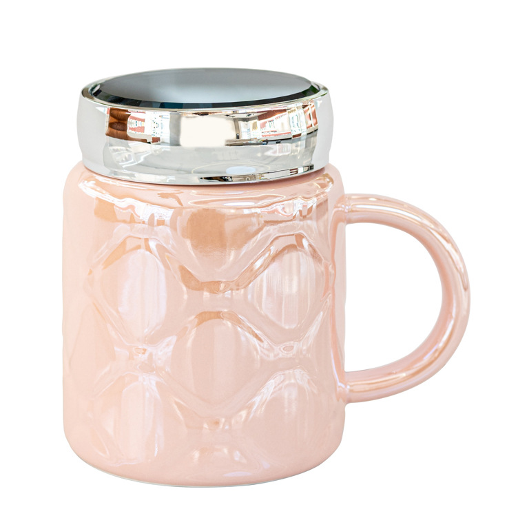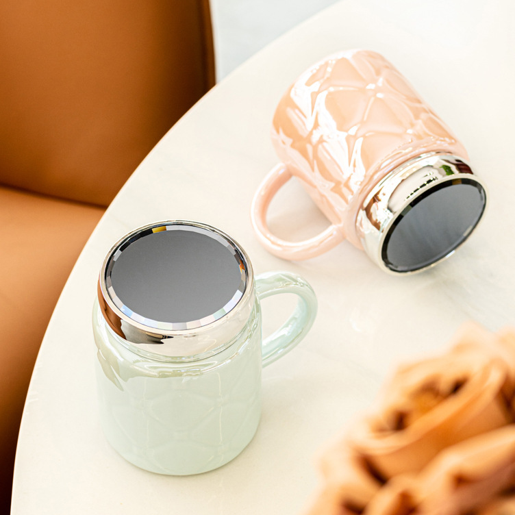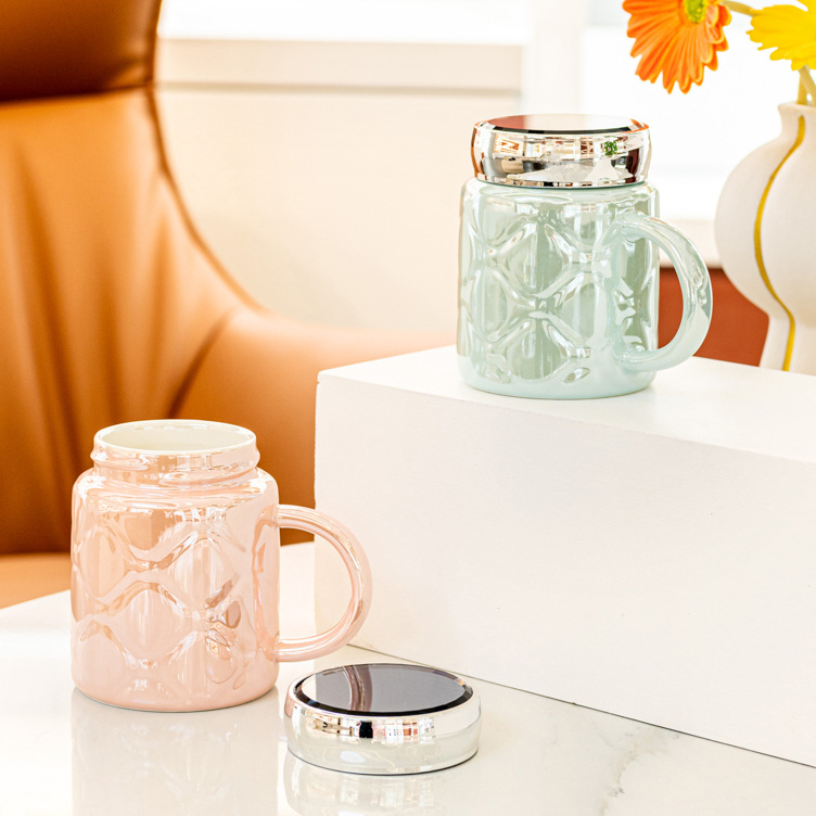 夏季高颜值大容量镜面保温杯带盖马克杯陶瓷杯情侣牛奶杯咖啡杯