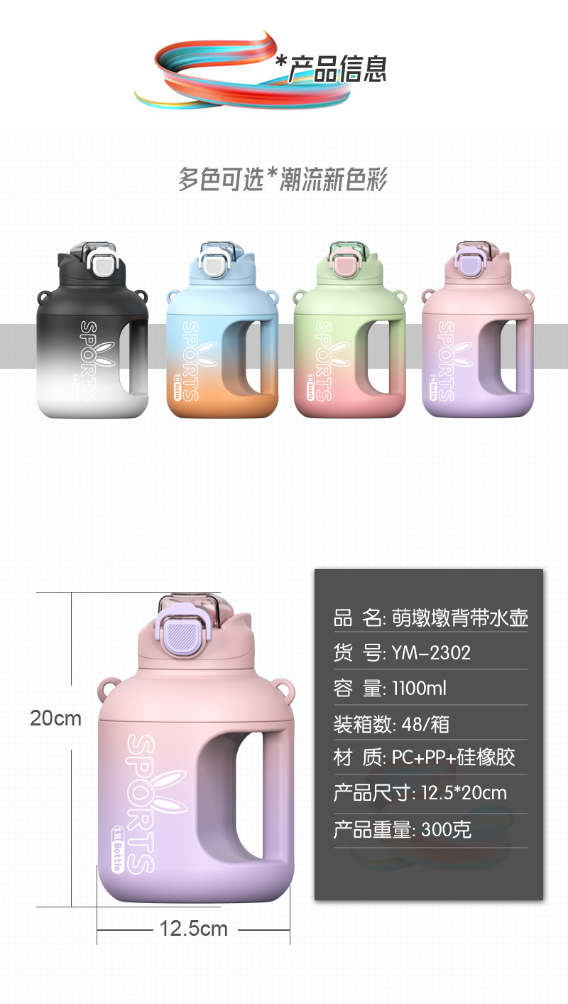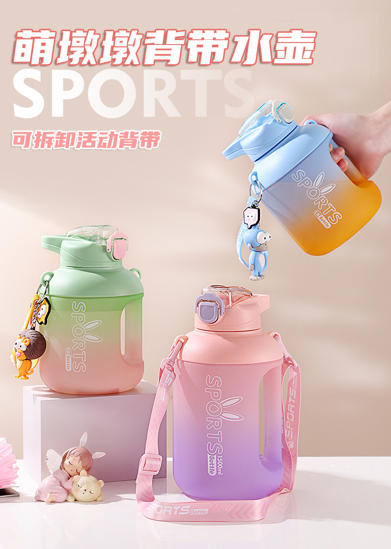 样品星兔创意卡通水杯儿童弹跳吸管杯可爱运动户外背带学生塑料杯