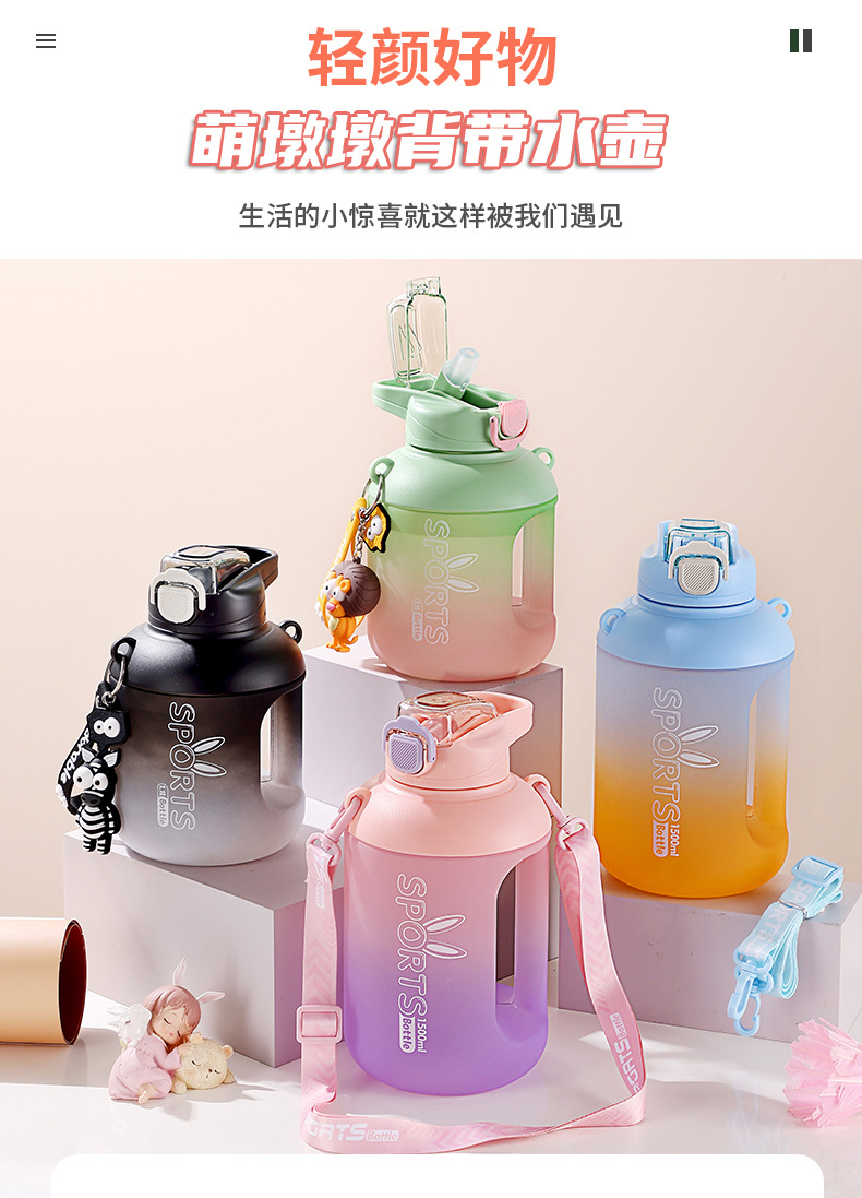 大容量水杯女生夏季高颜值运动吨吨桶男士顿顿太空水壶带吸管杯子