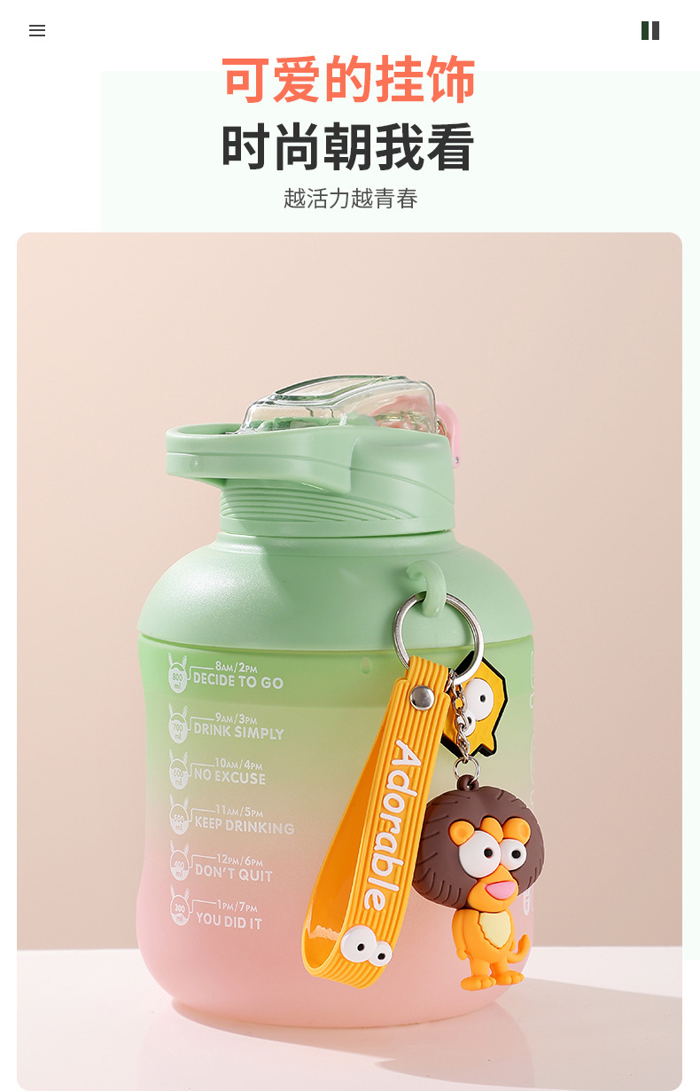 儿童吸管水杯夏天大容量可爱杯子女生高颜值搅拌杯耐高温塑料水壶