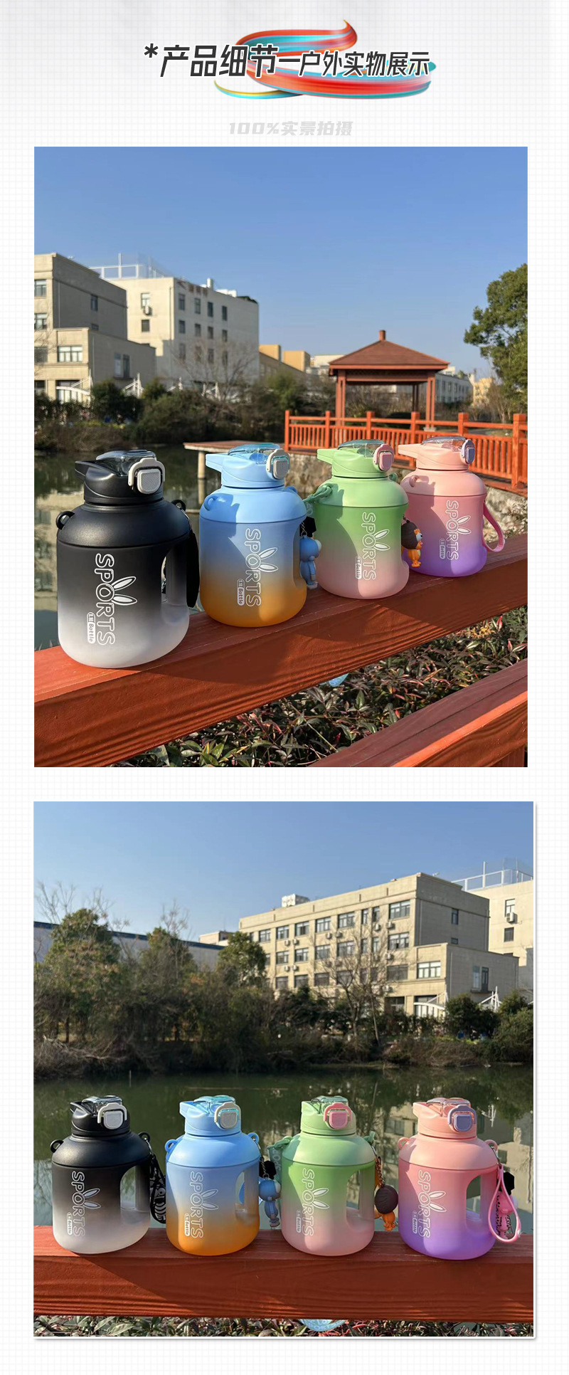 大容量运动水杯男1000ML水壶便携健身水杯女夏季塑料防摔太空杯子