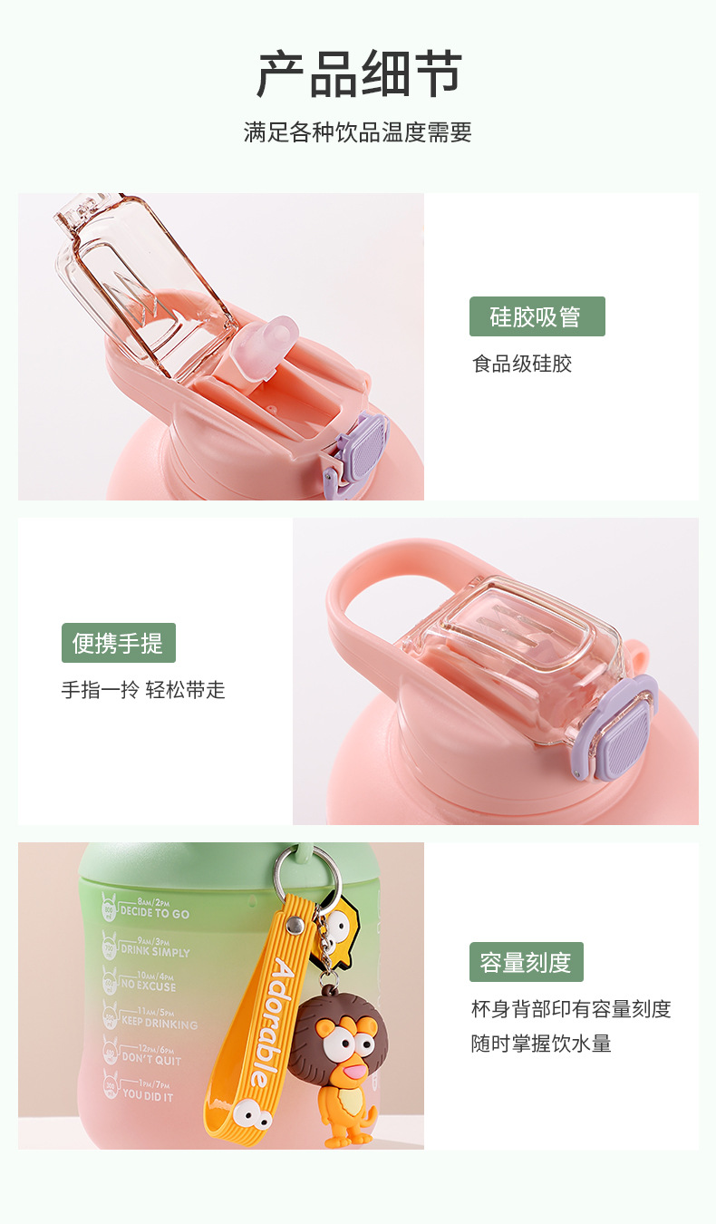 运动杯子男生水杯夏季水壶健身大容量耐高温2300ml吸管塑料高颜值