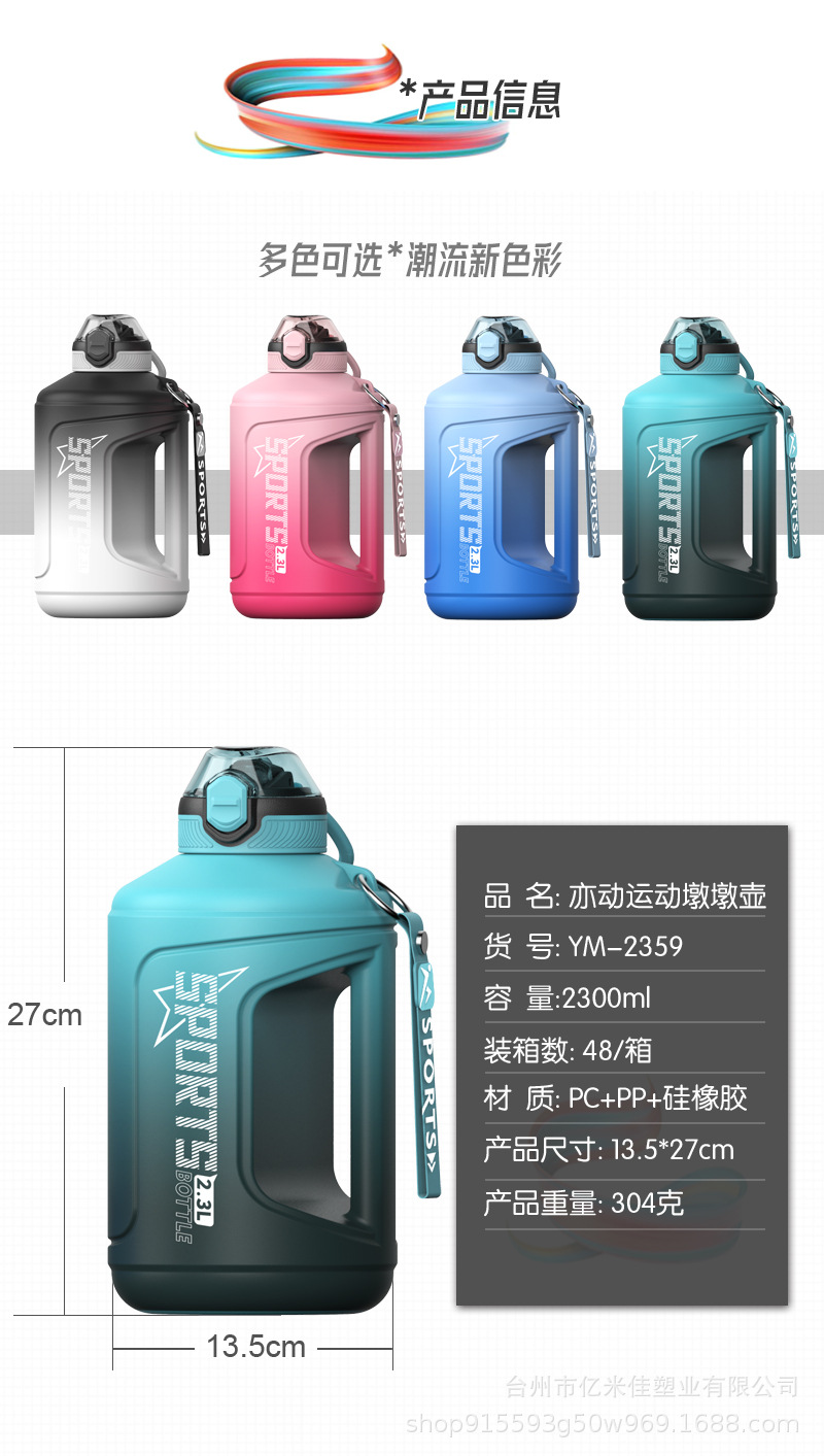 新款大容量水杯男运动健身水壶吨桶夏天吸管塑料太空杯便携吨吨桶