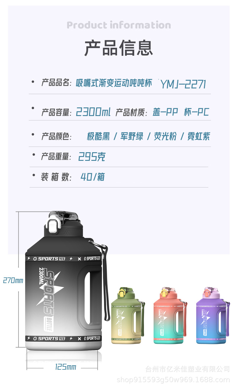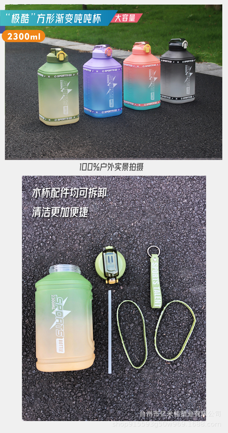 新款大容量水杯男运动健身水壶吨桶夏天吸管塑料太空杯便携吨吨桶