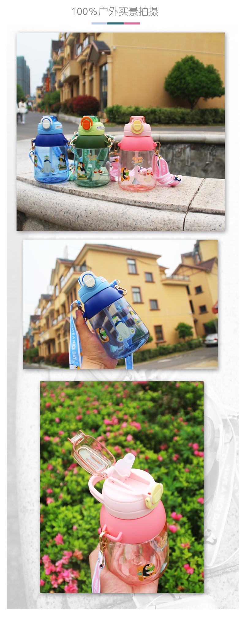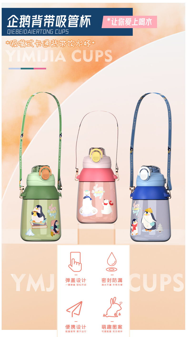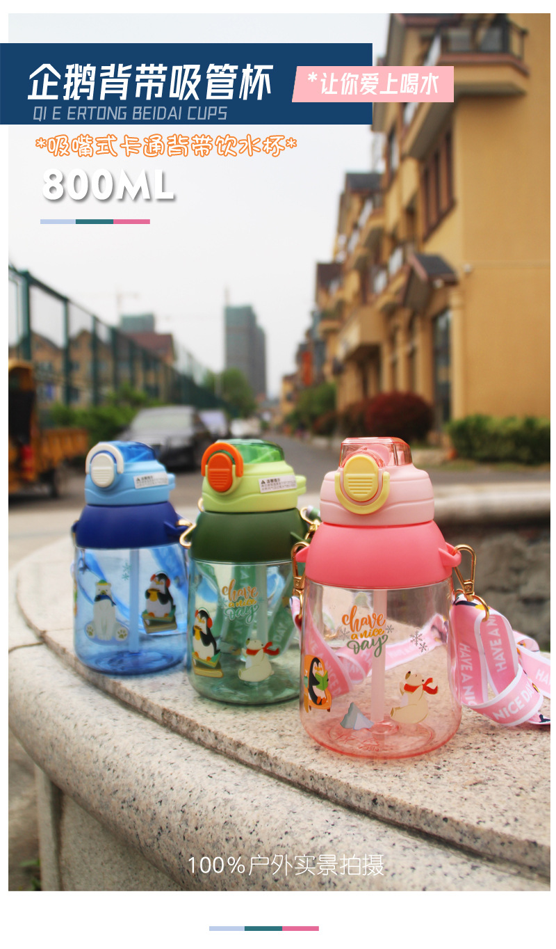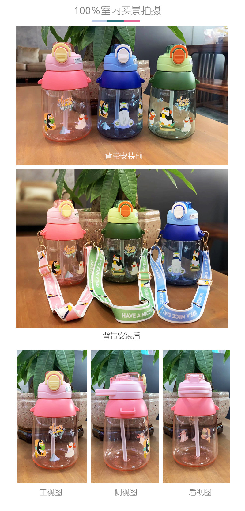 样品星兔创意卡通水杯儿童弹跳吸管杯可爱运动户外背带学生塑料杯