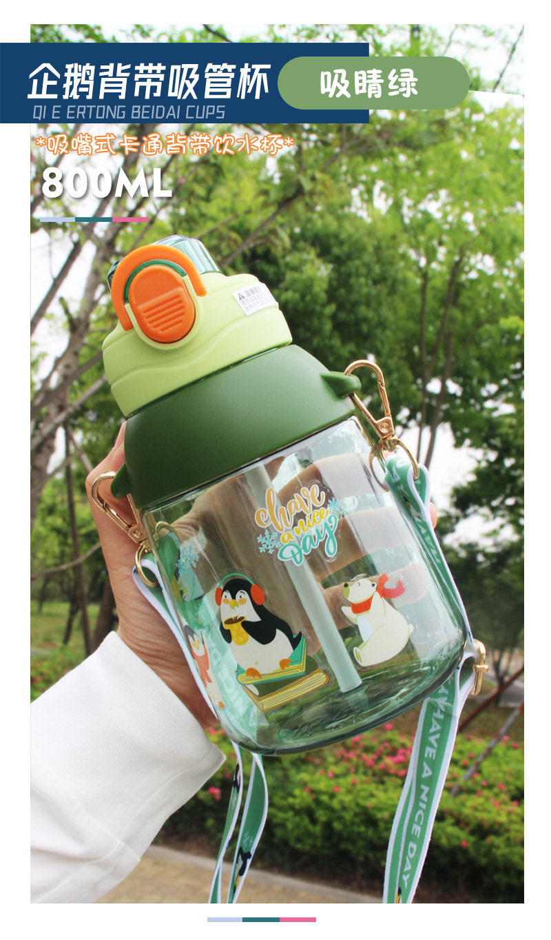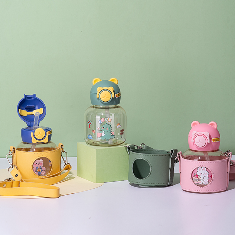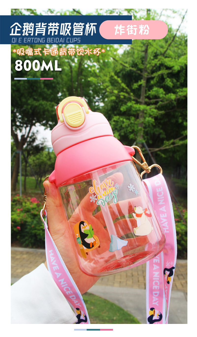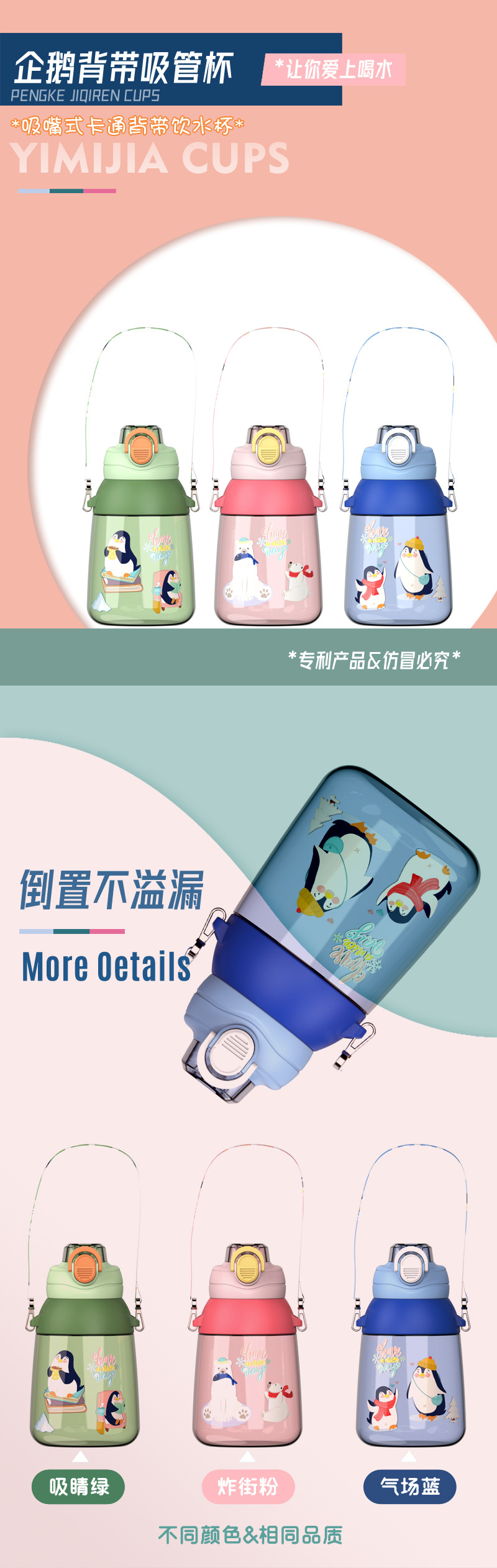 样品星兔创意卡通水杯儿童弹跳吸管杯可爱运动户外背带学生塑料杯