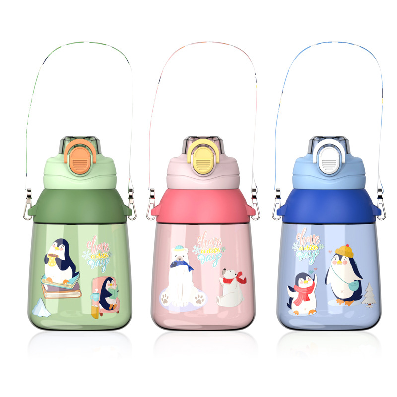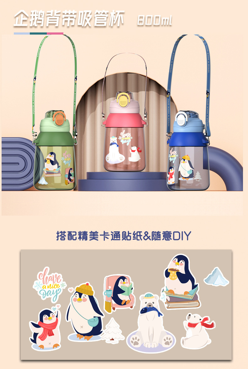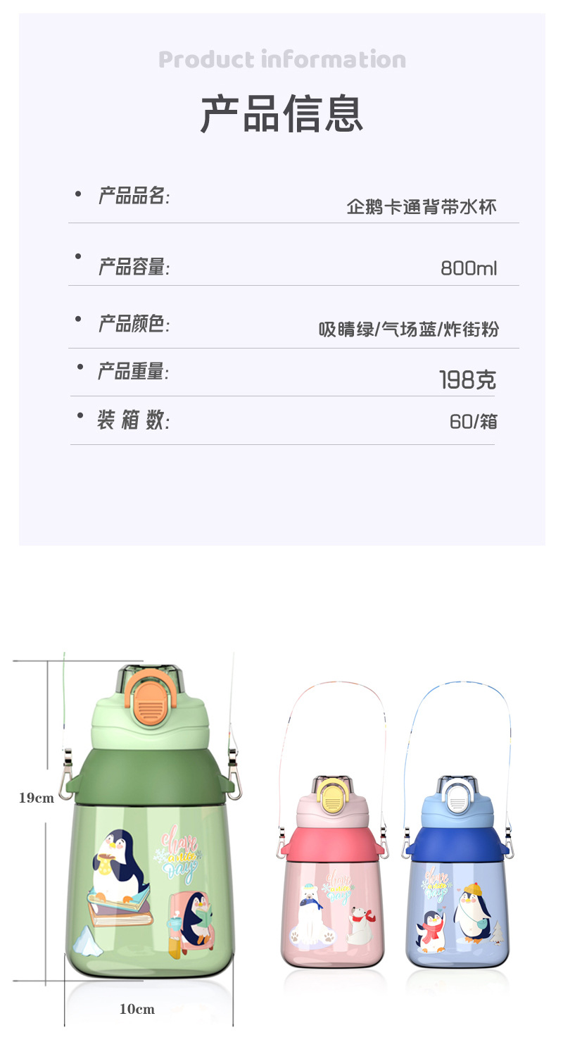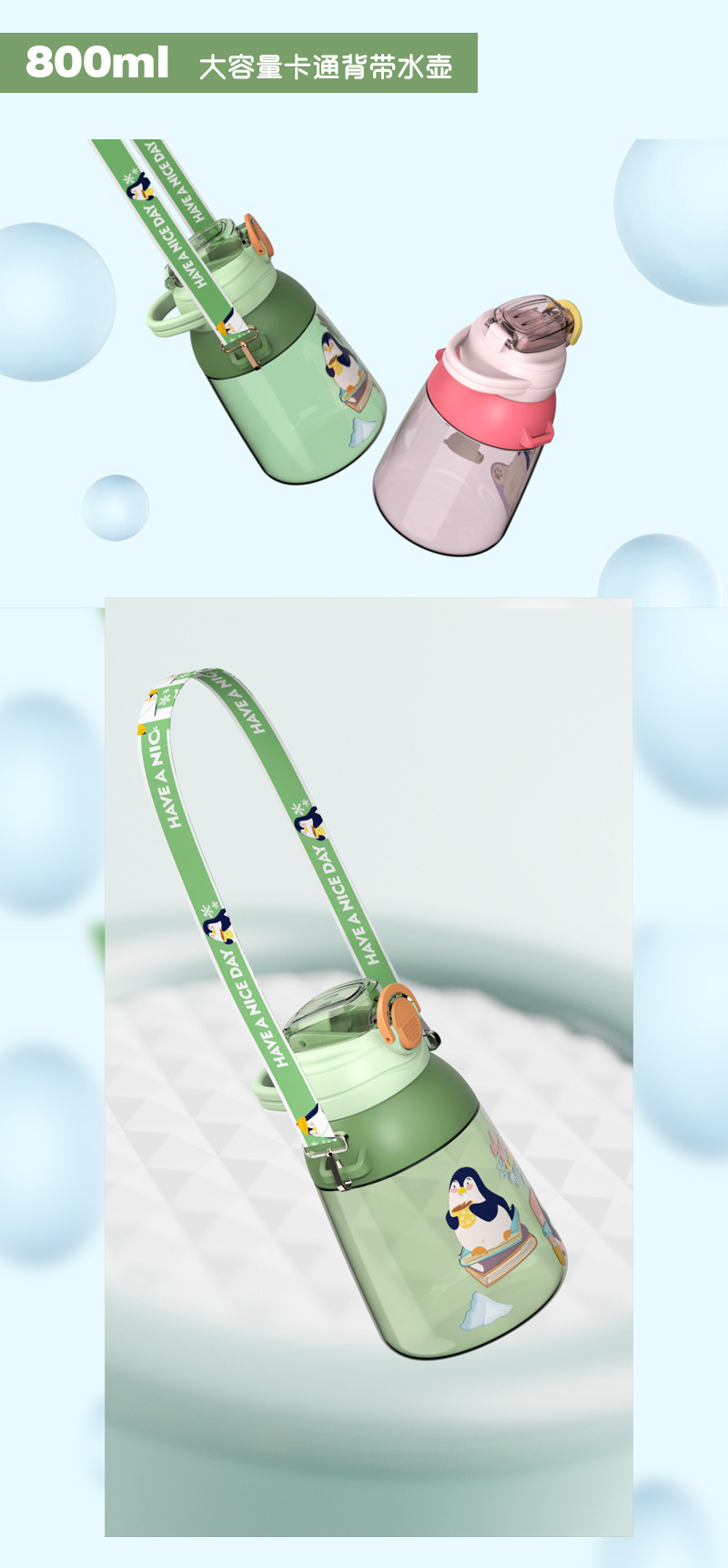 样品星兔创意卡通水杯儿童弹跳吸管杯可爱运动户外背带学生塑料杯