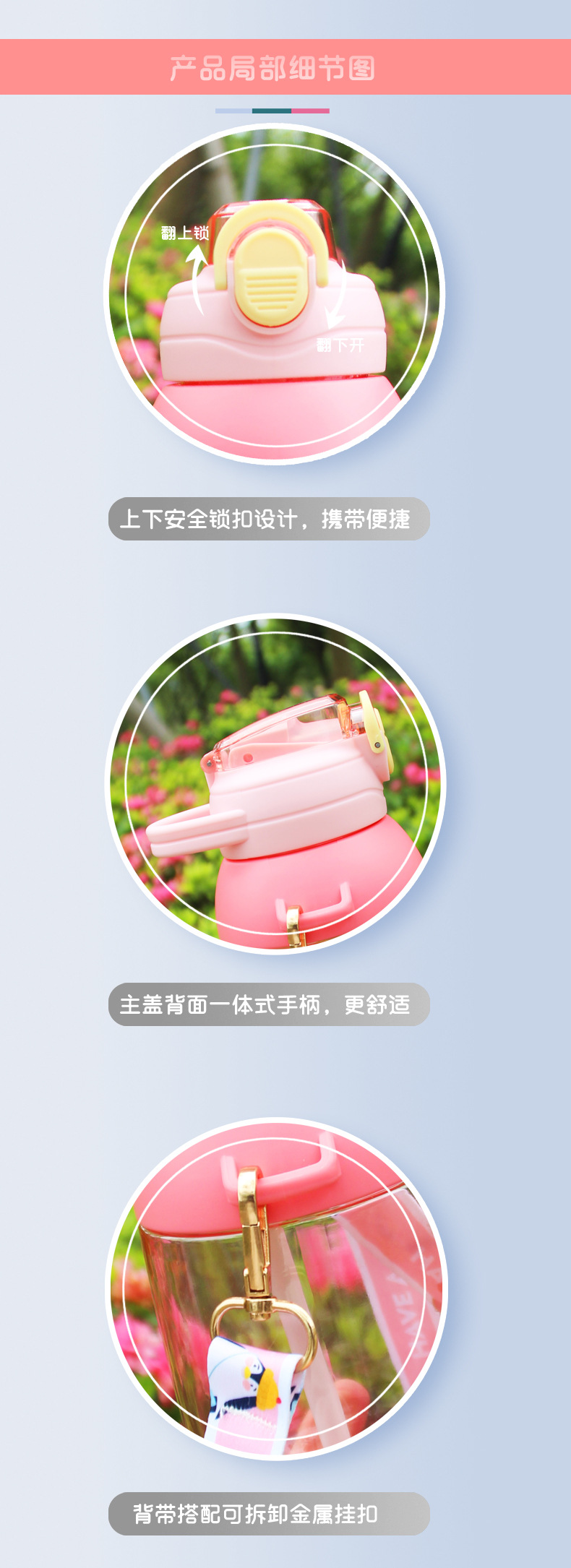 大容量运动水杯男女健身水壶夏天便携户外带吸嘴塑料学生杯子防摔