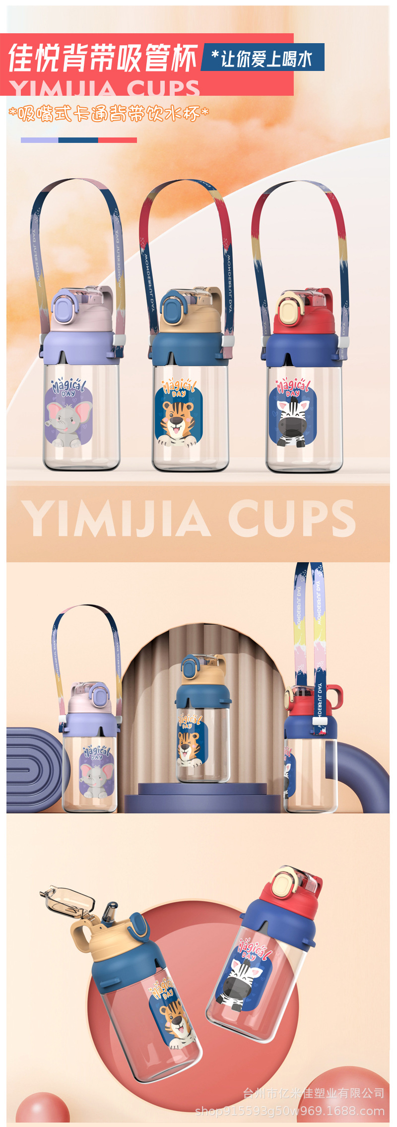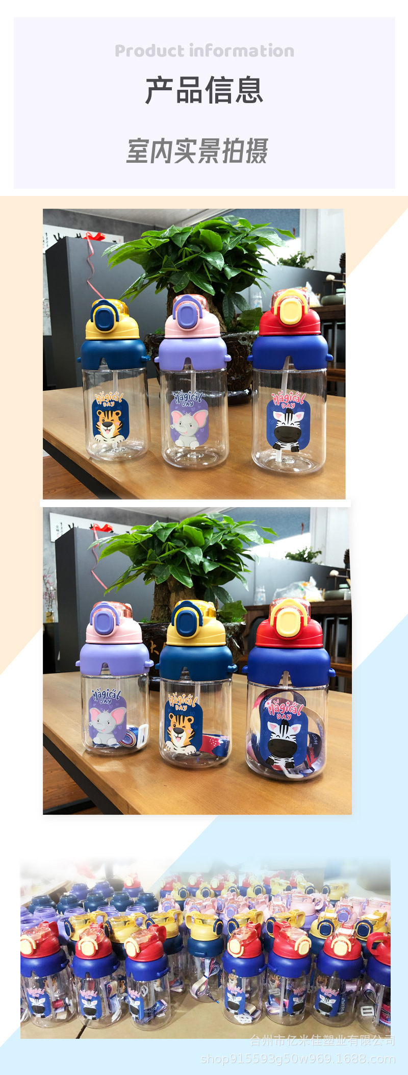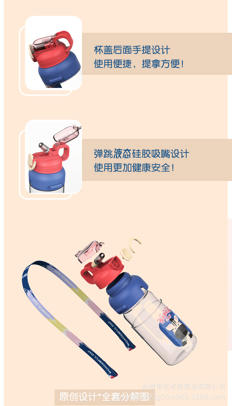 样品星兔创意卡通水杯儿童弹跳吸管杯可爱运动户外背带学生塑料杯